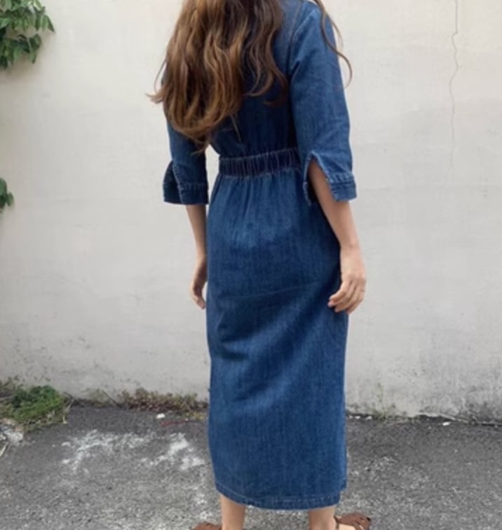 レトロで個性的なデニムワンピースが登場しました。シンプルなデザインながら、上品な印象を与えるスリムなシルエットが特徴です。タイトなシルエットで細身に見せてくれるので、大人可愛いスタイリングにぴったり。