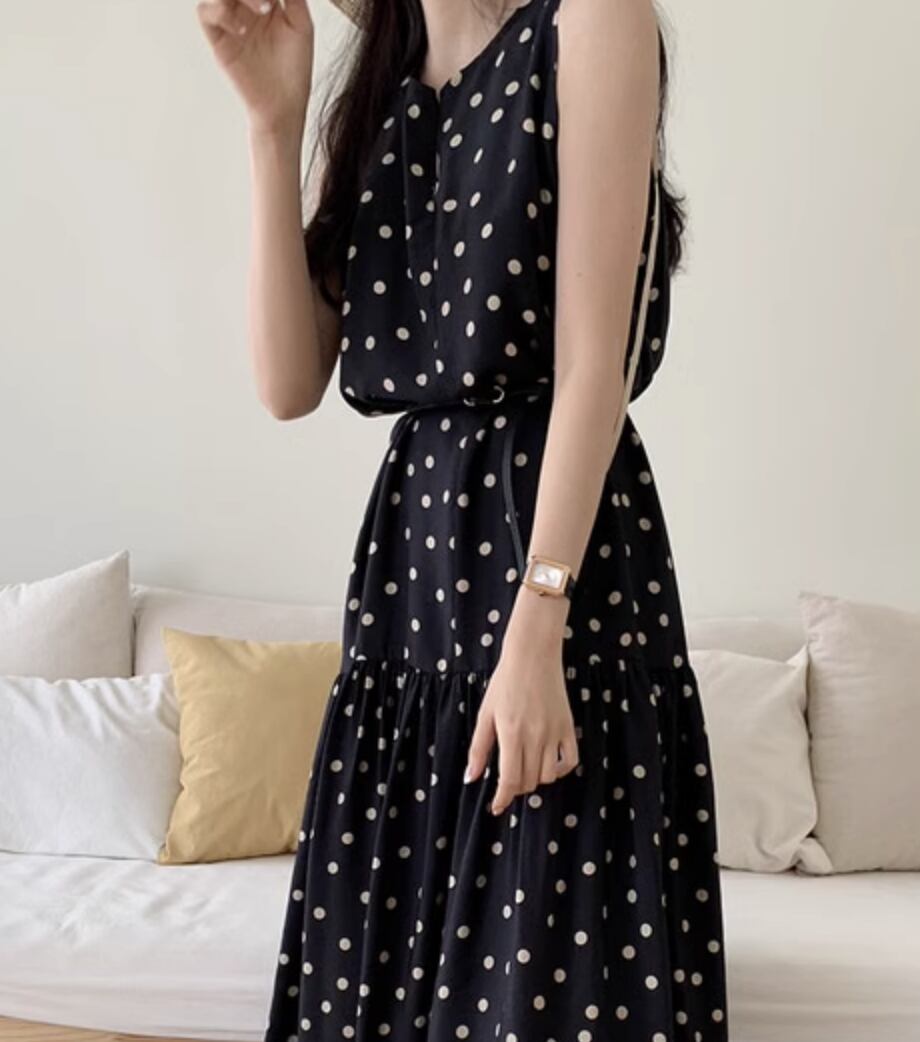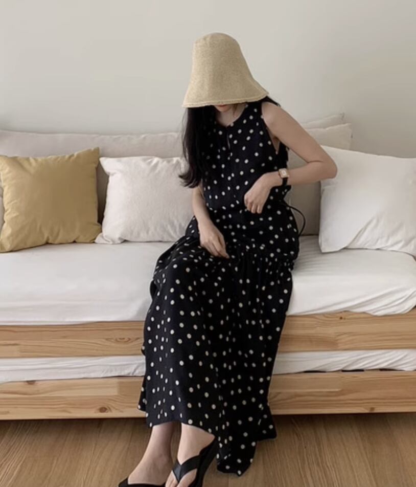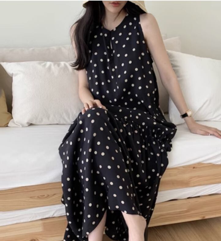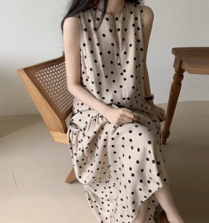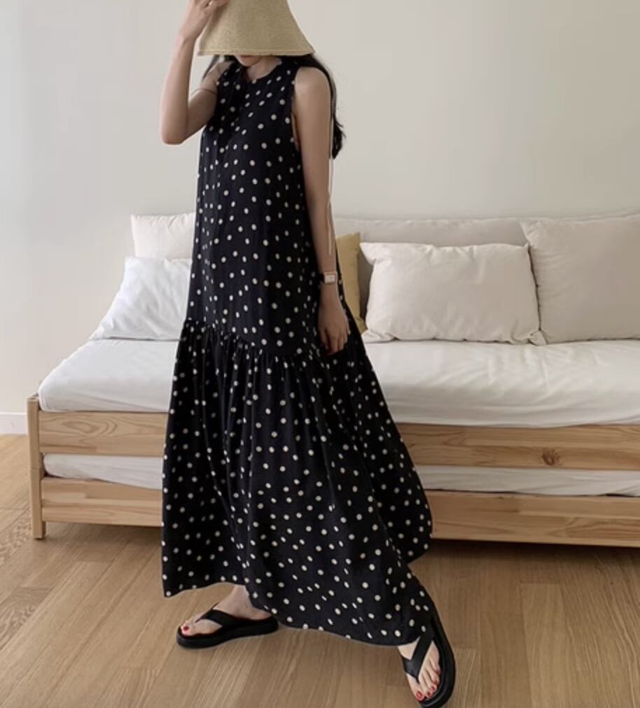 ワンピース ロング ノースリーブ かわいい 大人可愛い きれいめ シンプル カジュアル 上品 おしゃれ かっこいい レトロ こなれ感 ラフ ガーリー ルーズ 個性的 クール モード系 エレガント 主役級 存在感 抜け感 ヴィンテージ ラブリー キュート ゴシック 都会的 ラグジュアリー クラシカル ナチュラル 水玉 夏 OL 学生 デート お出かけ イベント 旅行 女子会 休日 ショッピング カフェ コーデ 楽ちん 普段使い 着回し モテ インスタ映え フリーサイズ 黒 ブラック カーキ