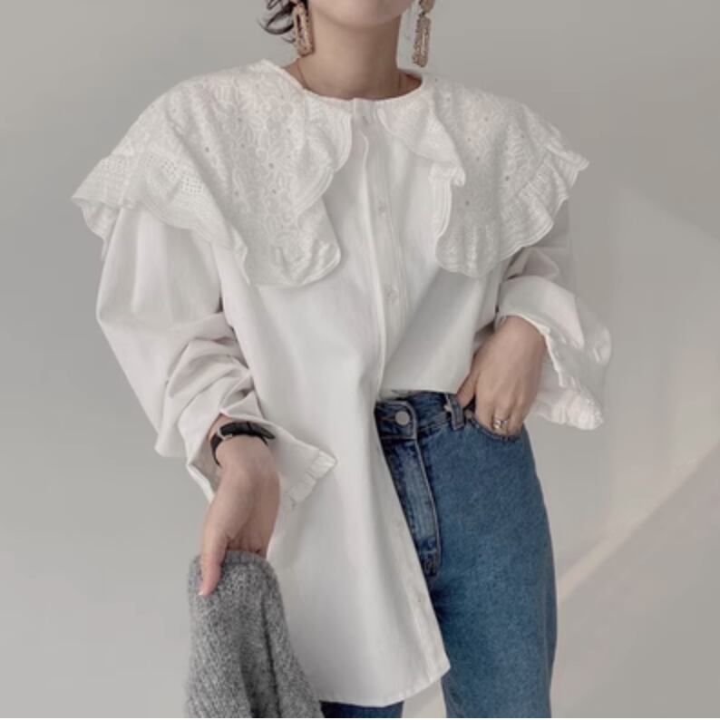 トップス シャツ ブラウス 長袖 かわいい 大人可愛い きれいめ シンプル カジュアル 上品 おしゃれ かっこいい レトロ こなれ感 ラフ ガーリー ルーズ 個性的 クール モード系 エレガント 主役級 存在感 抜け感 ヴィンテージ ラブリー キュート ゴシック 都会的 ラグジュアリー クラシカル ナチュラル 無地 春 秋 OL 学生 デート お出かけ イベント 旅行 女子会 休日 ショッピング カフェ コーデ 楽ちん 普段使い 着回し モテ インスタ映え フリーサイズ 白 ホワイト