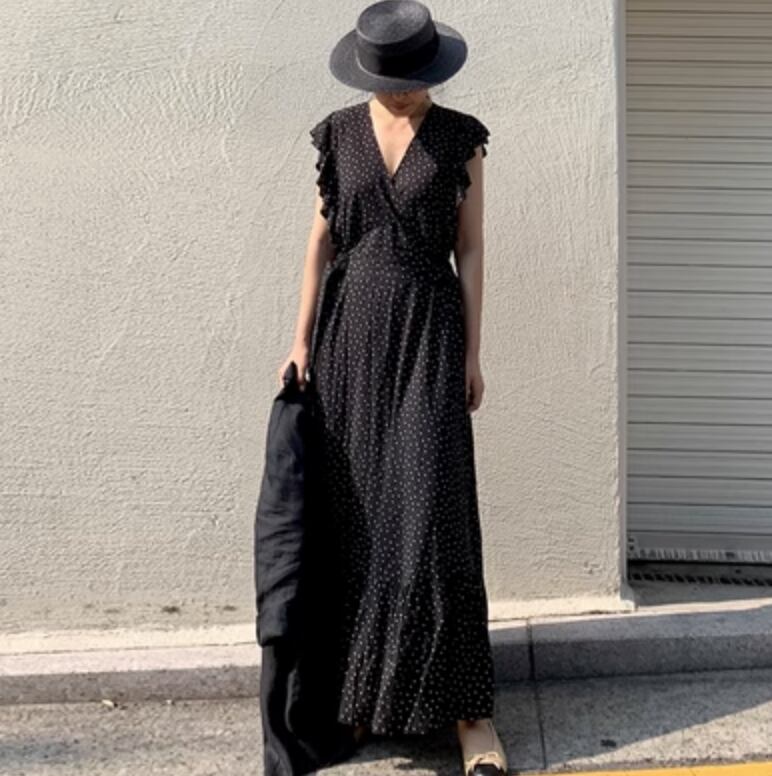 ワンピース ロング ノースリーブ かわいい 大人可愛い きれいめ シンプル カジュアル 上品 おしゃれ かっこいい レトロ こなれ感 ラフ ガーリー ルーズ 個性的 クール モード系 エレガント 主役級 存在感 抜け感 ヴィンテージ ラブリー キュート ゴシック 都会的 ラグジュアリー クラシカル ロマンティック ナチュラル 夏 OL 学生 デート お出かけ イベント 旅行 女子会 休日 ショッピング カフェ コーデ 楽ちん 普段使い 着回し モテ インスタ映え フリーサイズ 黒 ブラック
