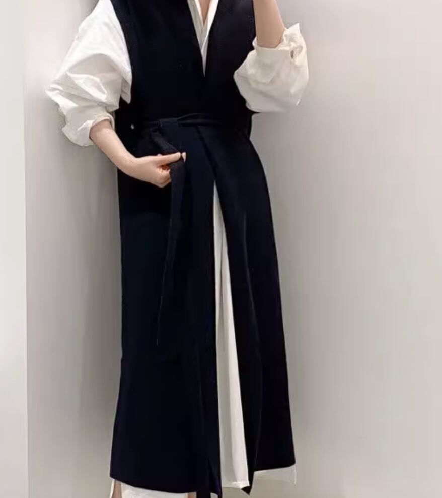 おしゃれな女性にぴったりなワンピースとベストのセットアイテムが登場しました!シャツワンピースとベストをレイヤードして、一枚でオシャレ感を演出できます。シンプルなデザインなので、カジュアルにもきれいめにも着こなせます。