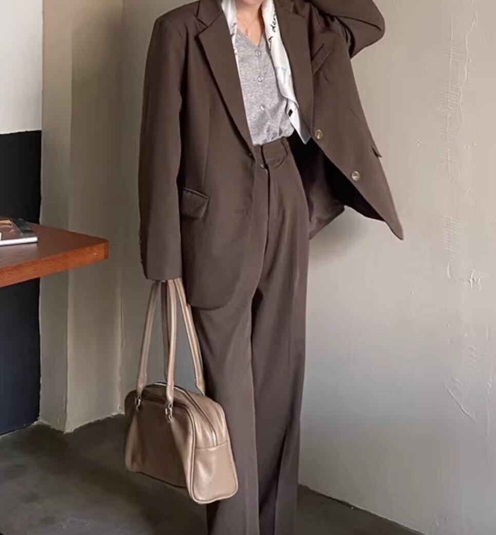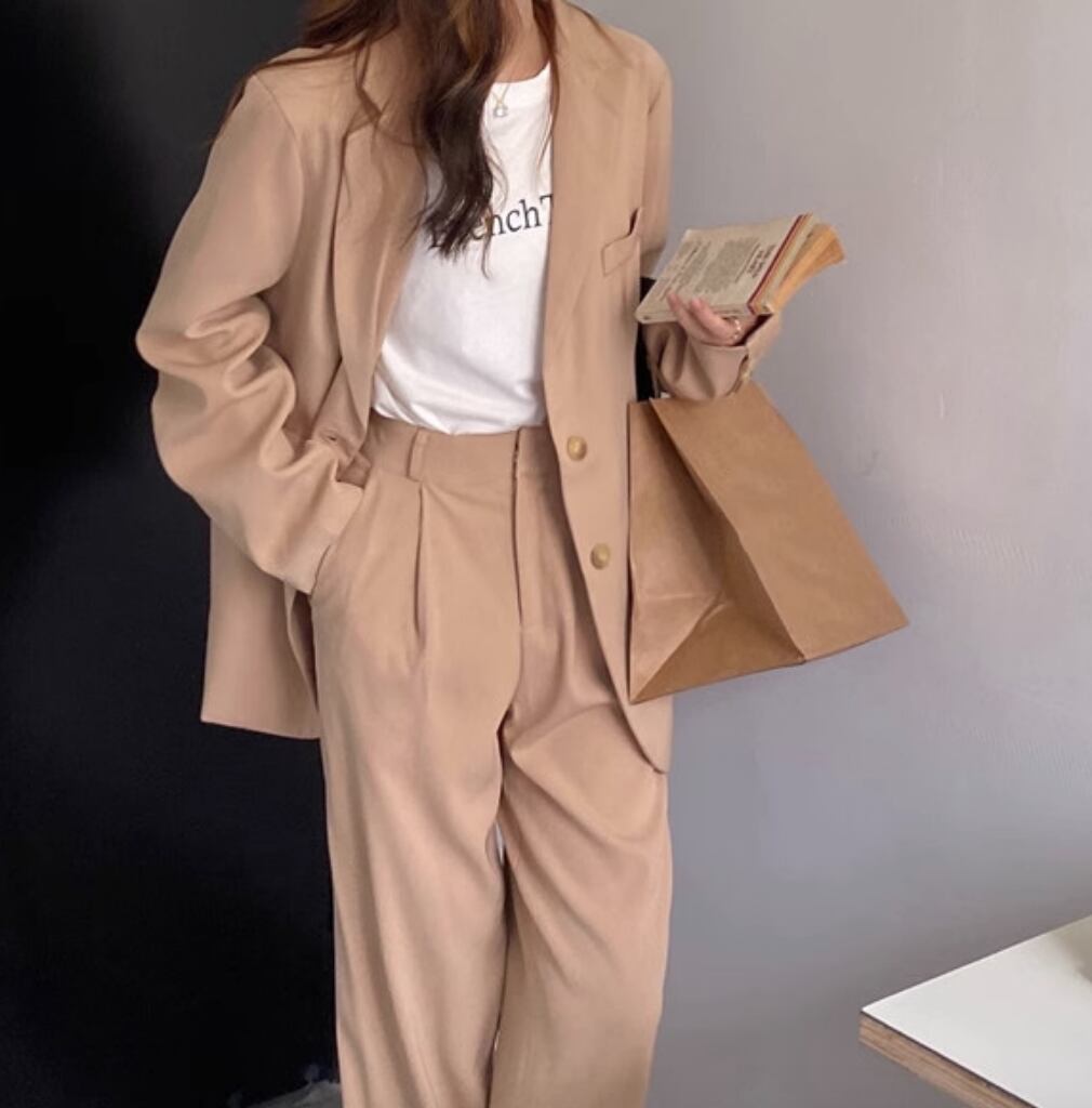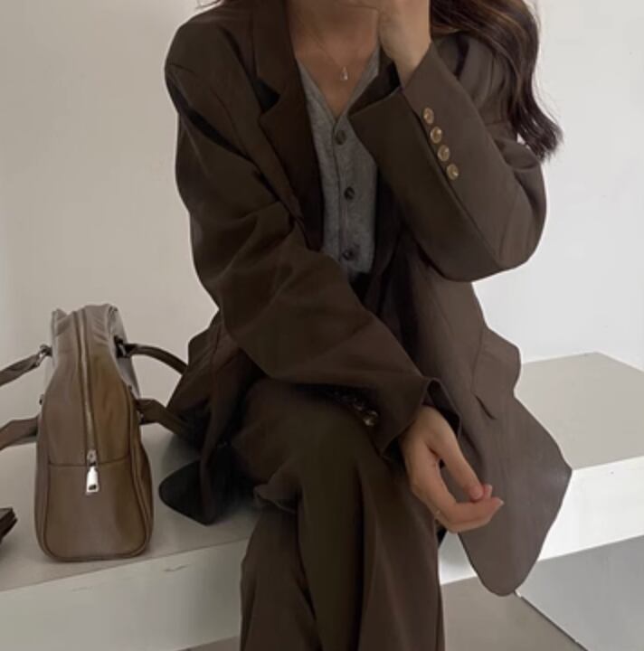 ジャケット パンツ ボトムス セットアップ 長袖 かわいい 大人可愛い きれいめ シンプル カジュアル 上品 おしゃれ かっこいい レトロ こなれ感 ラフ ガーリー ルーズ 個性的 クール モード系 エレガント 主役級 存在感 抜け感 ヴィンテージ ラブリー キュート ゴシック 都会的 ラグジュアリー クラシカル ロマンティック ナチュラル OL 学生 デート お出かけ イベント 旅行 女子会 休日 ショッピング カフェ コーデ 楽ちん 普段使い 着回し モテ インスタ映え S M ブラウン ベージュ