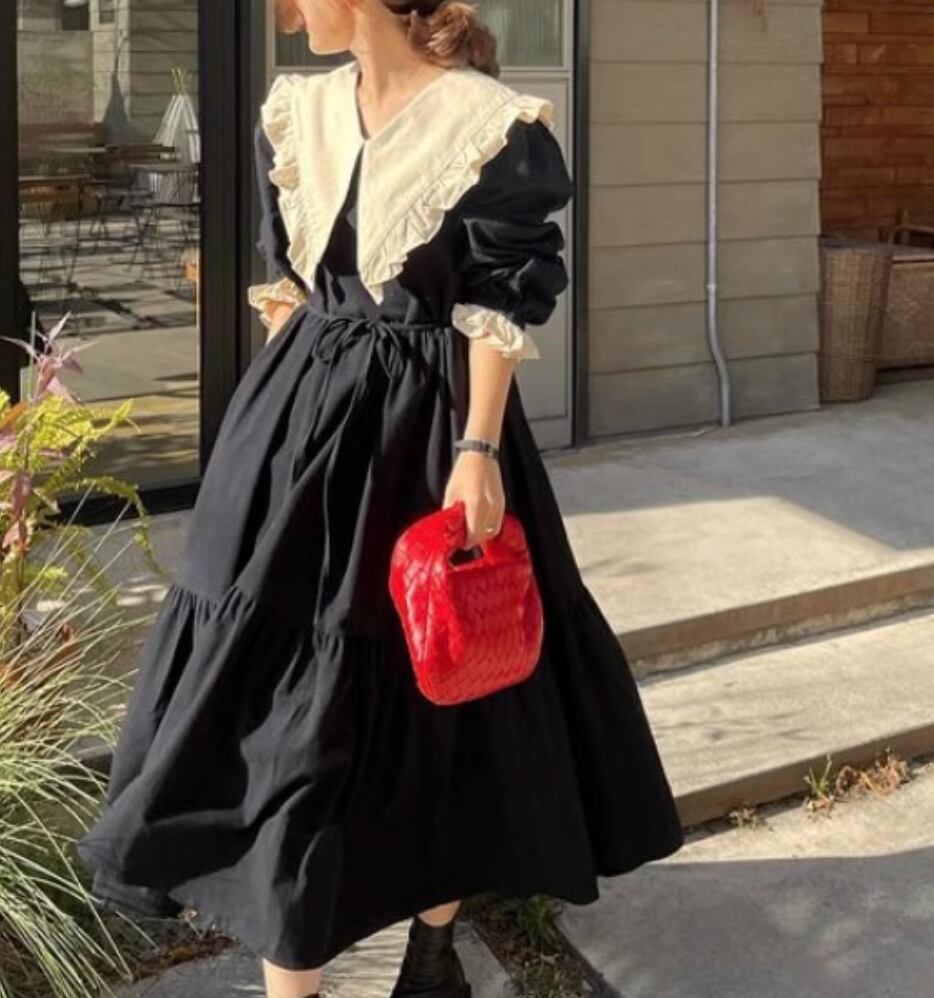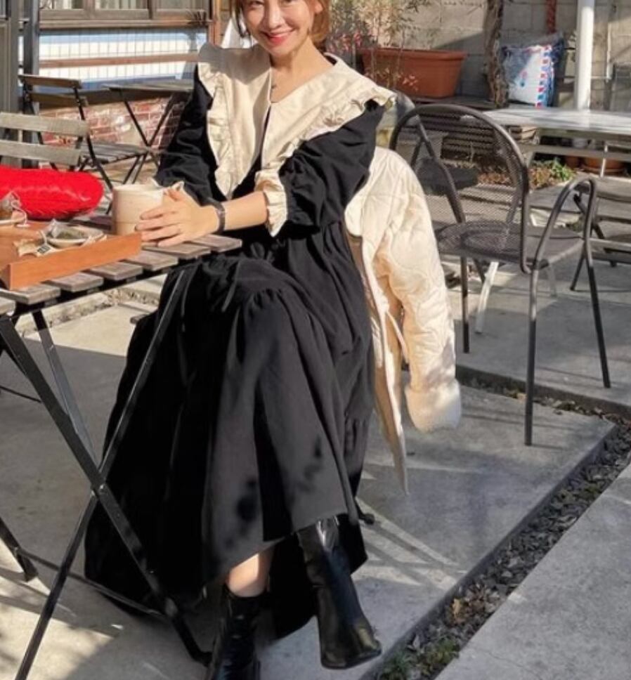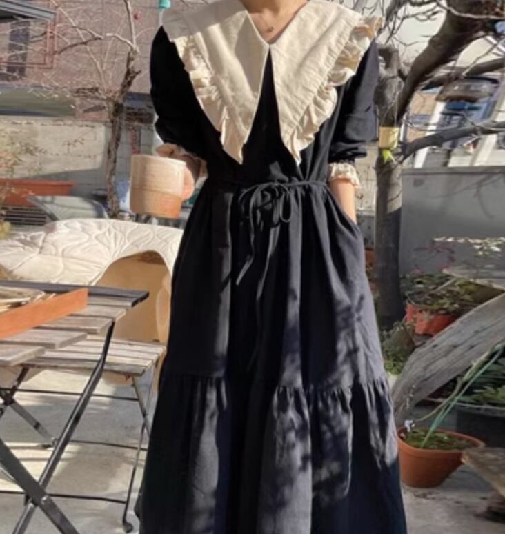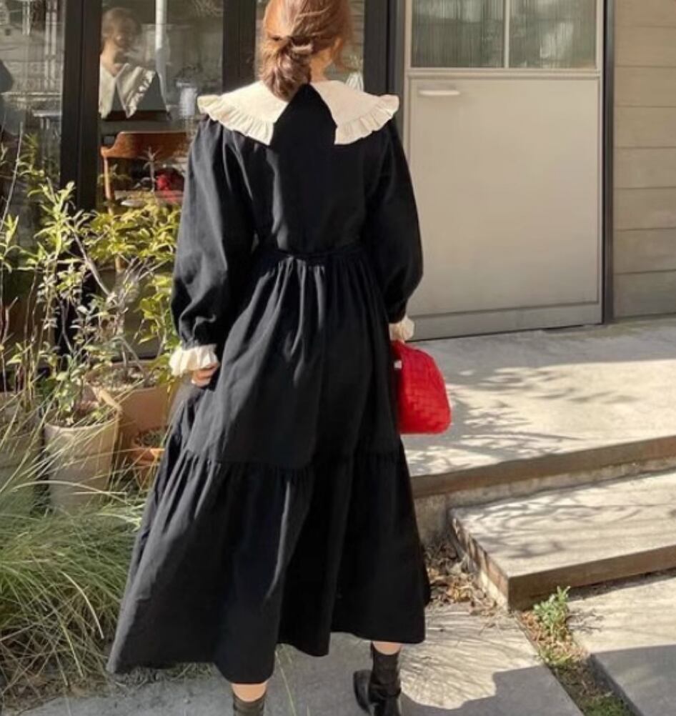 ワンピース ロング 長袖 かわいい 大人可愛い きれいめ シンプル カジュアル 上品 おしゃれ かっこいい レトロ こなれ感 ラフ ガーリー ルーズ 個性的 クール モード系 エレガント 主役級 存在感 抜け感 ヴィンテージ ラブリー キュート ゴシック 都会的 ラグジュアリー クラシカル ロマンティック ナチュラル 春 秋 OL 学生 デート お出かけ イベント 旅行 女子会 休日 ショッピング カフェ コーデ 楽ちん 普段使い 着回し モテ インスタ映え フリーサイズ 黒 ブラック