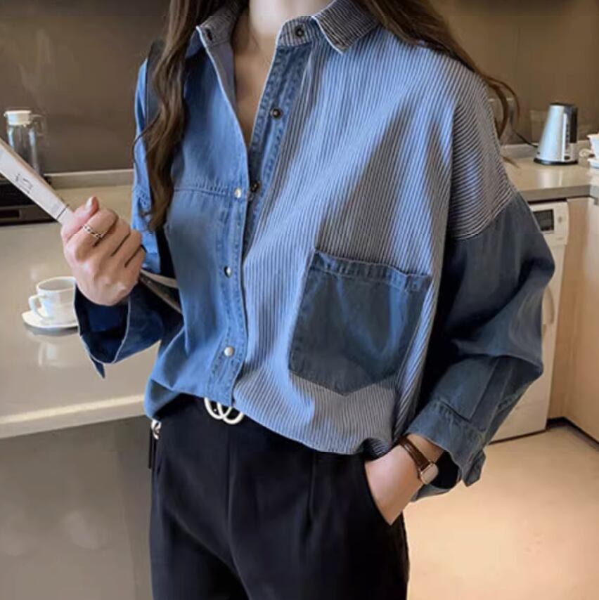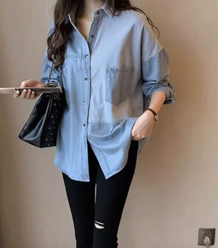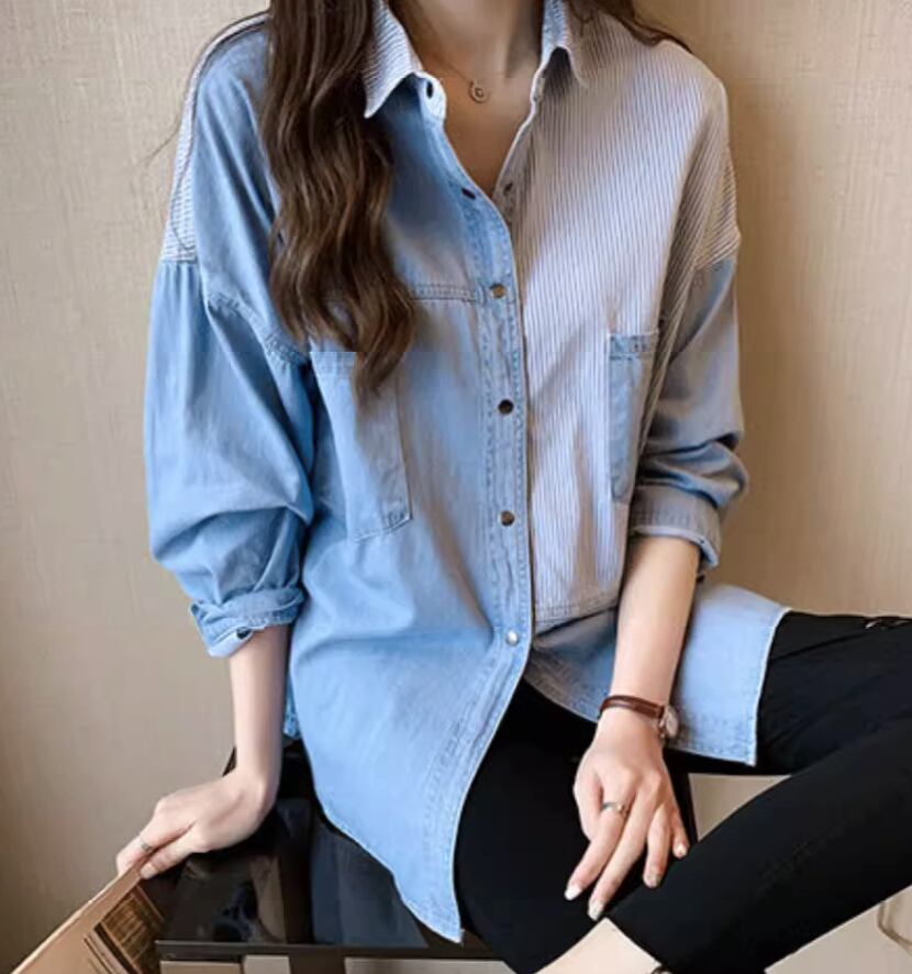 トップス シャツ ブラウス デニム 長袖 かわいい 大人可愛い きれいめ シンプル カジュアル 上品 おしゃれ かっこいい レトロ こなれ感 ラフ ガーリー ルーズ 個性的 クール モード系 エレガント 主役級 存在感 抜け感 ヴィンテージ ラブリー キュート ゴシック 都会的 ラグジュアリー クラシカル ロマンティック ナチュラル OL 学生 デート お出かけ イベント 旅行 女子会 休日 ショッピング カフェ コーデ 楽ちん 普段使い 着回し モテ インスタ映え S M L XL ブルー ネイビー