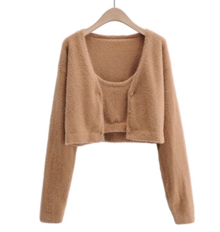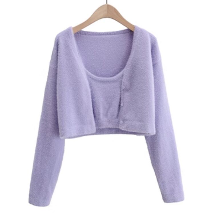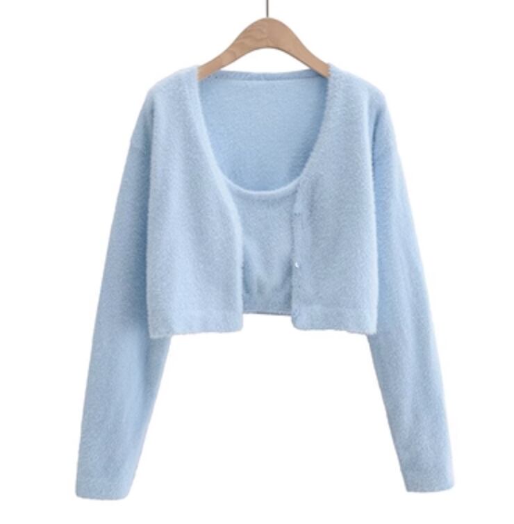 カーディガンと可愛らしいキャミソールが一緒になったセットアイテムです。カジュアルなデイリールックにも、きれいめなオケージョンにもぴったりです。程よい丈感で、アウターとしてもインナーとしても使えるので、おしゃれの幅も広がります。