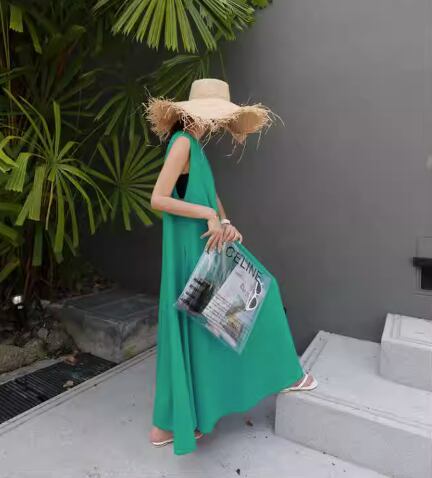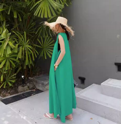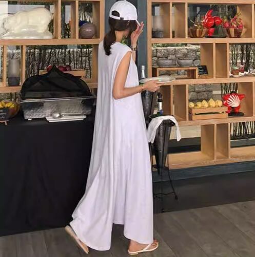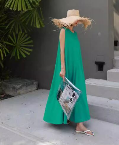 ワンピース シャツワンピース ロング丈 ノースリーブ ラウンドネック ルーズ Aライン ハイウエストプルオーバー 綿 コットン 大人可愛い きれいめ シンプル カジュアル 大人 上品 お洒落 かっこいい レトロ 大人可愛い 大人女子 こなれ感 ラフ クール モード系 エレガント モダン 主役級 存在感 とろみ感 抜け感 無地 夏 10代 20代 30代 40代 レディース デート お出かけ 女子会 休日 リゾート 海 普段使い 韓国 オルチャン 楽ちん モテ トレンド 流行 S M L ホワイト グリーン