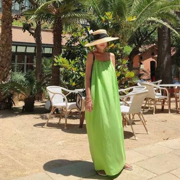 ワンピース ロング丈 ノースリーブ ルーズ サスペンダー Aライン ふわふわ プルオーバー 綿 リネン 薄手 コットン 大人可愛い きれいめ シンプル カジュアル 大人 上品 お洒落 かっこいい レトロ 大人可愛い 大人女子 こなれ感 ラフ クール モード系 エレガント モダン 主役級 存在感 とろみ感 抜け感 無地 夏 10代 20代 30代 40代 レディース デート お出かけ 女子会 休日 リゾート 海 普段使い 韓国系 オルチャン 楽ちん モテ トレンド 流行 S M L XL ブラック グリーン