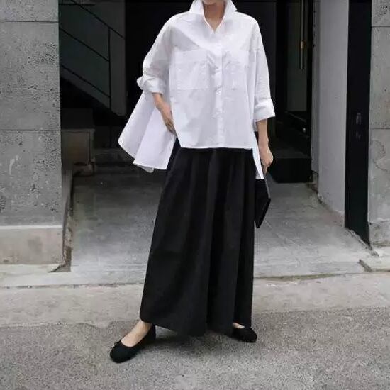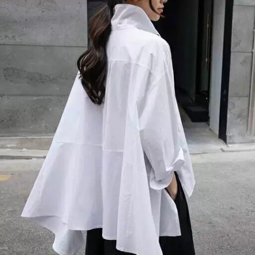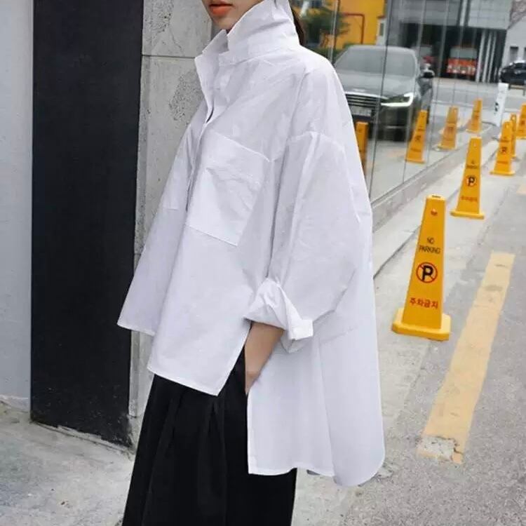トップス シャツ 白シャツ レギュラー丈 長袖 ルーズ ポロカラー ストレート スリット 前開き ボタン 綿 薄手 コットン 大人可愛い きれいめ シンプル カジュアル 大人 上品 お洒落 かっこいい レトロ 大人可愛い 大人女子 こなれ感 クール モード系 エレガント モダン 主役級 存在感 とろみ感 抜け感 無地 春 夏 20代 30代 40代 レディース OL 通勤 デート お出かけ 女子会 ショッピング 韓国系 オルチャン ファッション コーデ スタイル トレンド 流行 S M L XL ホワイト