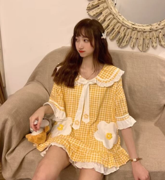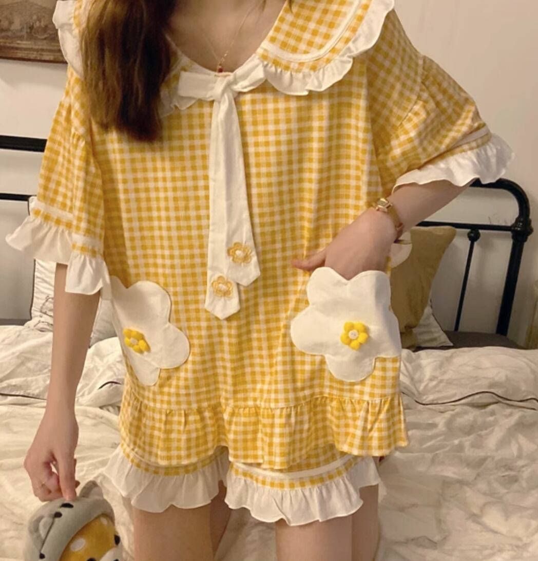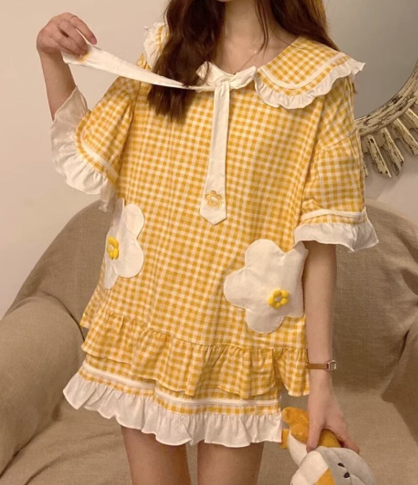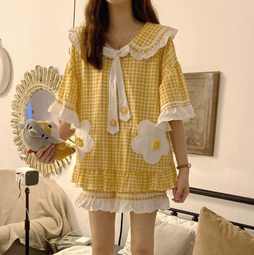 ルームウェア パジャマ 部屋着 寝巻き 半袖 かわいい 大人可愛い きれいめ シンプル カジュアル 上品 おしゃれ かっこいい レトロ こなれ感 ラフ ガーリー ルーズ 個性的 クール モード系 エレガント 主役級 存在感 抜け感 ヴィンテージ ラブリー キュート 都会的 ラグジュアリー クラシカル ロマンティック ナチュラル ギンガムチェック 夏 OL 学生 デート 旅行 女子会 休日 コーデ 楽ちん 普段使い 着回し モテ インスタ映え M L XL 2XL 3XL ゆったり ゆる イエロー