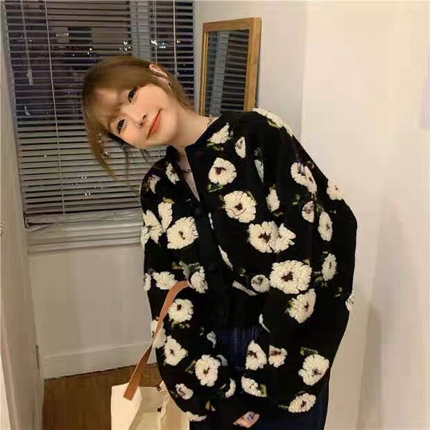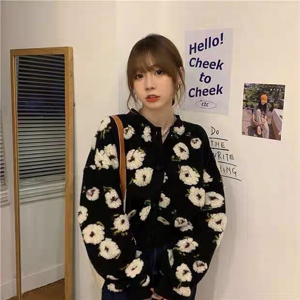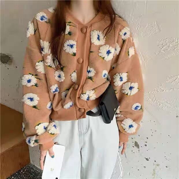 アウター カーディガン ショートコート 上着 ショート丈 袖あり 長袖 ラウンドネック もこもこ モコモコ 前開き 柄 花柄 フラワー かわいい 大人可愛い カジュアル おしゃれ お洒落 レトロ キュート ガーリー ルーズ フェミニン 秋 冬 10代 20代 30代 40代 レディース 女性用 デート お出かけ 女子会 休日 ショッピング 着回し 普段使い 韓国 韓国系 オルチャン ファッション コーデ スタイル 暖かい モテ インスタ映え デイリー 色展開 黒 ブラック ベージュ サイズ フリーサイズ