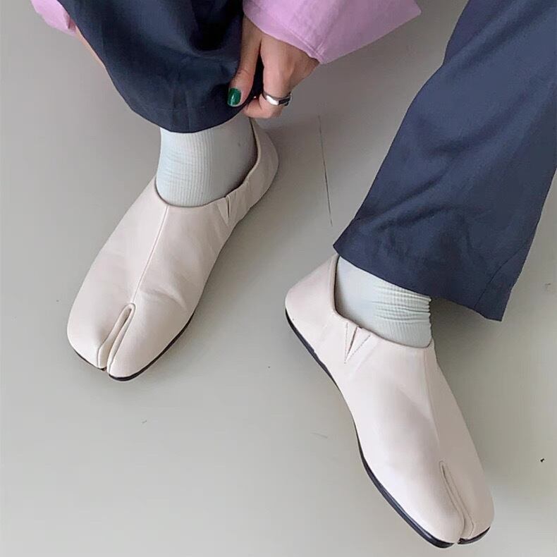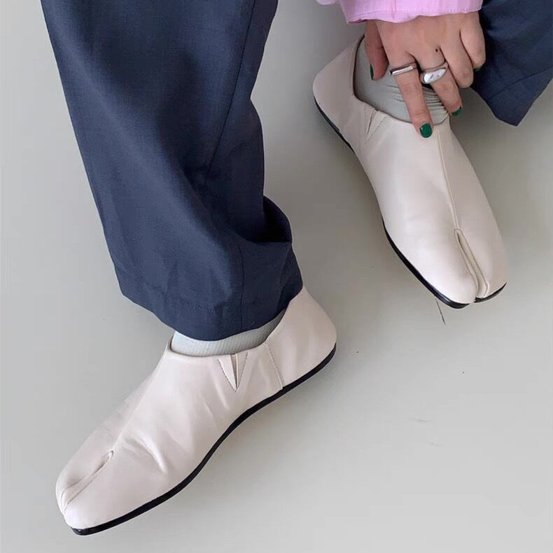 シンプルで無駄のないデザイン、個性的でこなれ感あるスタイルを演出できる、足袋フラットシューズ。