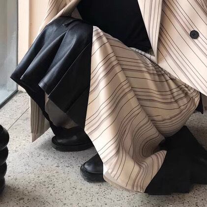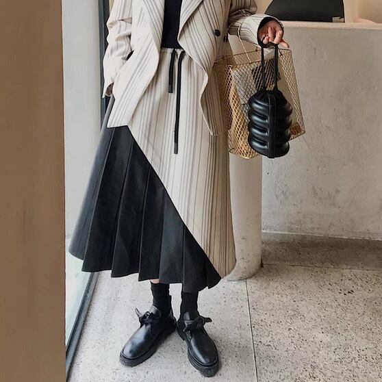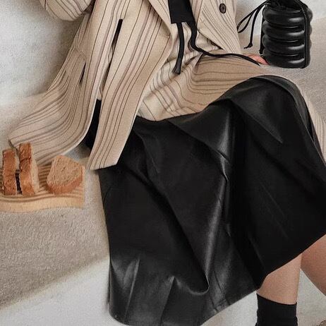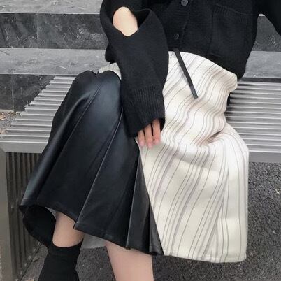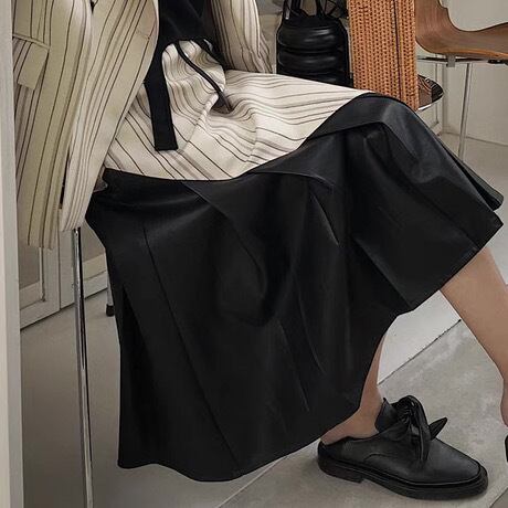 スカート ボトムス ロングスカート プリーツ ロング丈 Aライン アシンメトリー 切り替えデザイン 異素材 PU 無地 ストライプ 大人 上品 おしゃれ お洒落 かっこいい 個性的 クール モード系 エレガント 主役級 存在感 クラシカル 春 秋 冬 衣装 10代 20代 30代 40代 レディース 女性用 デート お出かけ 女子会 休日 パーティー イベント ショッピング 着回し 普段使い 韓国 韓国系 オルチャン ファッション コーデ スタイル 高見え デイリー サイズ XS S M 小さいサイズ
