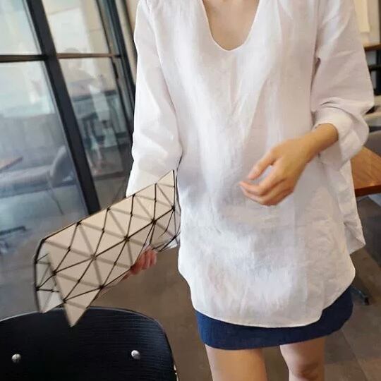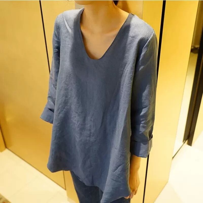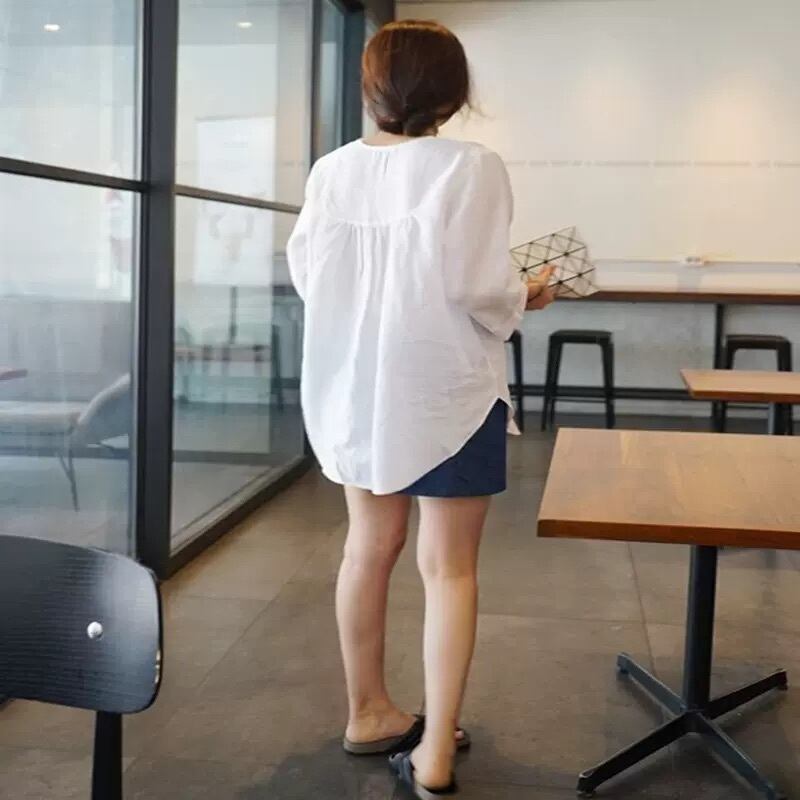 トップス シャツ レギュラー丈 七分袖 Vネック ルーズ ストレート プルオーバー 綿 麻 コットン 大人可愛い きれいめ シンプル カジュアル 大人 上品 お洒落 かっこいい レトロ 大人可愛い 大人女子 こなれ感 ラフ クール モード系 モダン 主役級 存在感 とろみ感 抜け感 無地 夏 10代 20代 30代 40代 レディース OL 通勤 学生 通学 デート お出かけ 女子会 お泊まり 休日 普段使い 韓国系 オルチャン コーデ スタイル 楽ちん トレンド 流行 S M L XL ホワイト ブルー