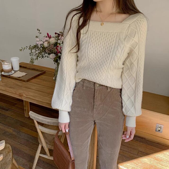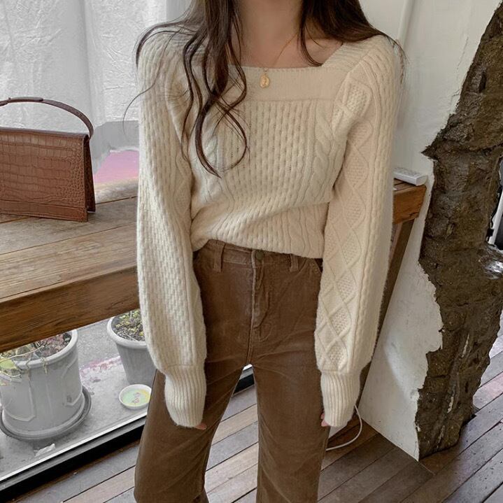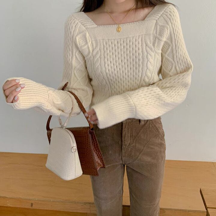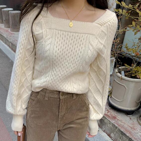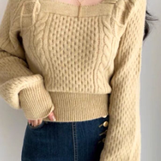 トップス セーター ニット 袖あり 長袖 スクエアネック ケーブルニット ウール 無地 大人可愛い きれいめ シンプル カジュアル 大人 上品 おしゃれ お洒落 レトロ こなれ感 ガーリー 抜け感 秋 冬 10代 20代 30代 40代 50代 レディース 女性用 オフィス OL デート お出かけ 女子会 休日 ショッピング 公園 着回し 普段使い 韓国 韓国系 オルチャン ファッション コーデ コーディネート スタイル 暖かい モテ デイリー 色展開 黒 ブラック カーキ アプリコット フリーサイズ