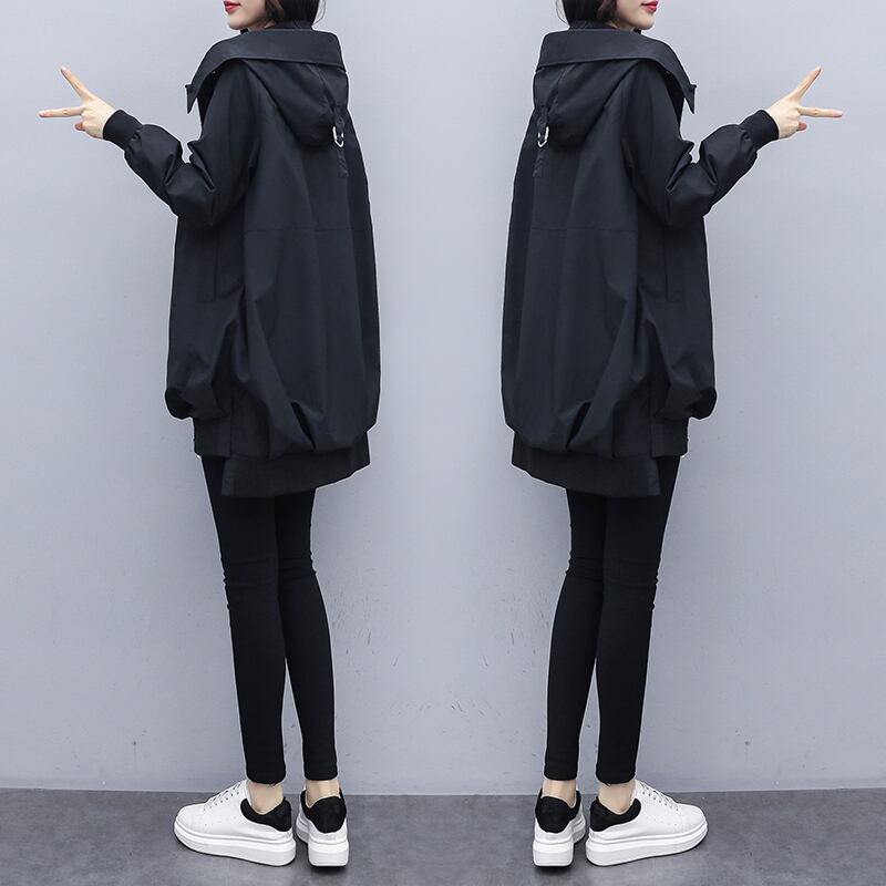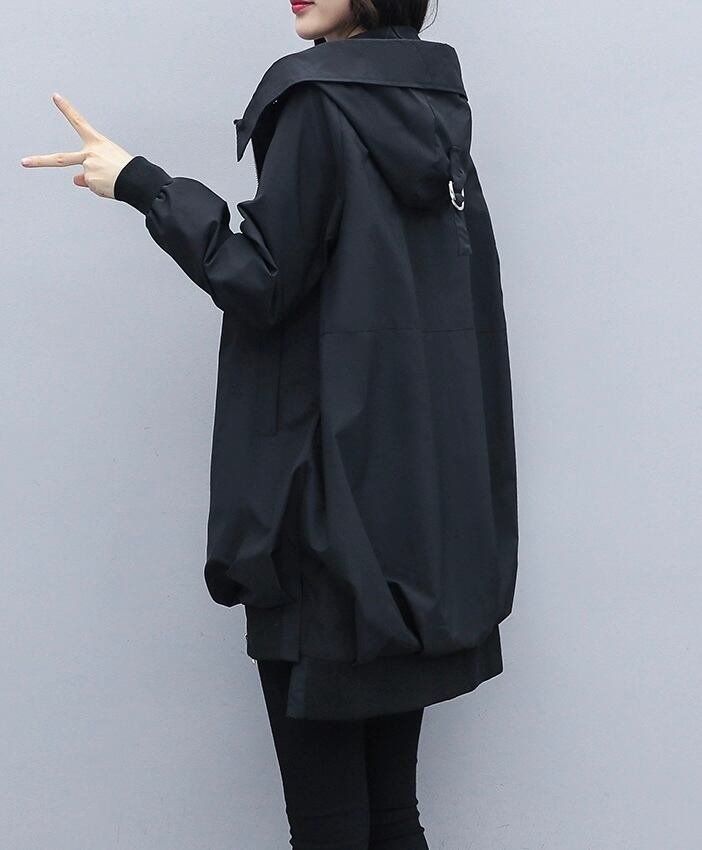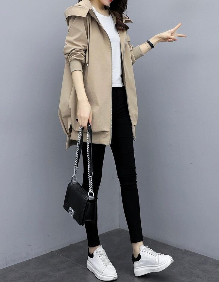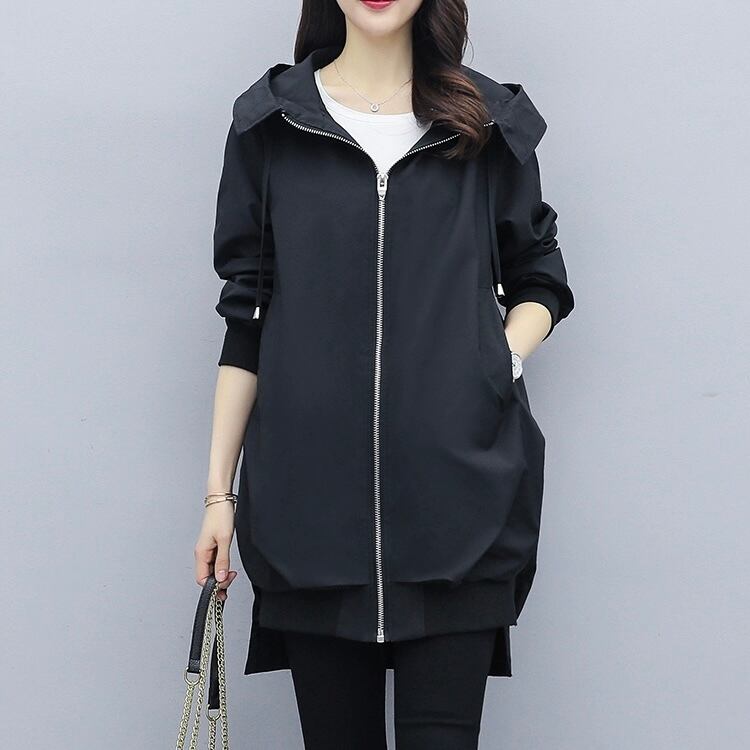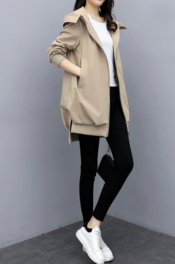 アウター コート ウインドブレーカー ミドル丈 長袖 ルーズ ストレート フード付き ポケット ファスナー 前開き 大人可愛い きれいめ シンプル カジュアル 大人 上品 お洒落 かっこいい レトロ 大人可愛い 大人女子 こなれ感 ラフ クール モード系 モダン 存在感 とろみ感 抜け感 無地 春 秋 10代 20代 30代 40代 レディース OL 通勤 学生 通学 デート お出かけ 女子会 お泊まり 休日 普段使い 韓国系 オルチャン 楽ちん トレンド 流行 S M L XL 2XL カーキ ブラック