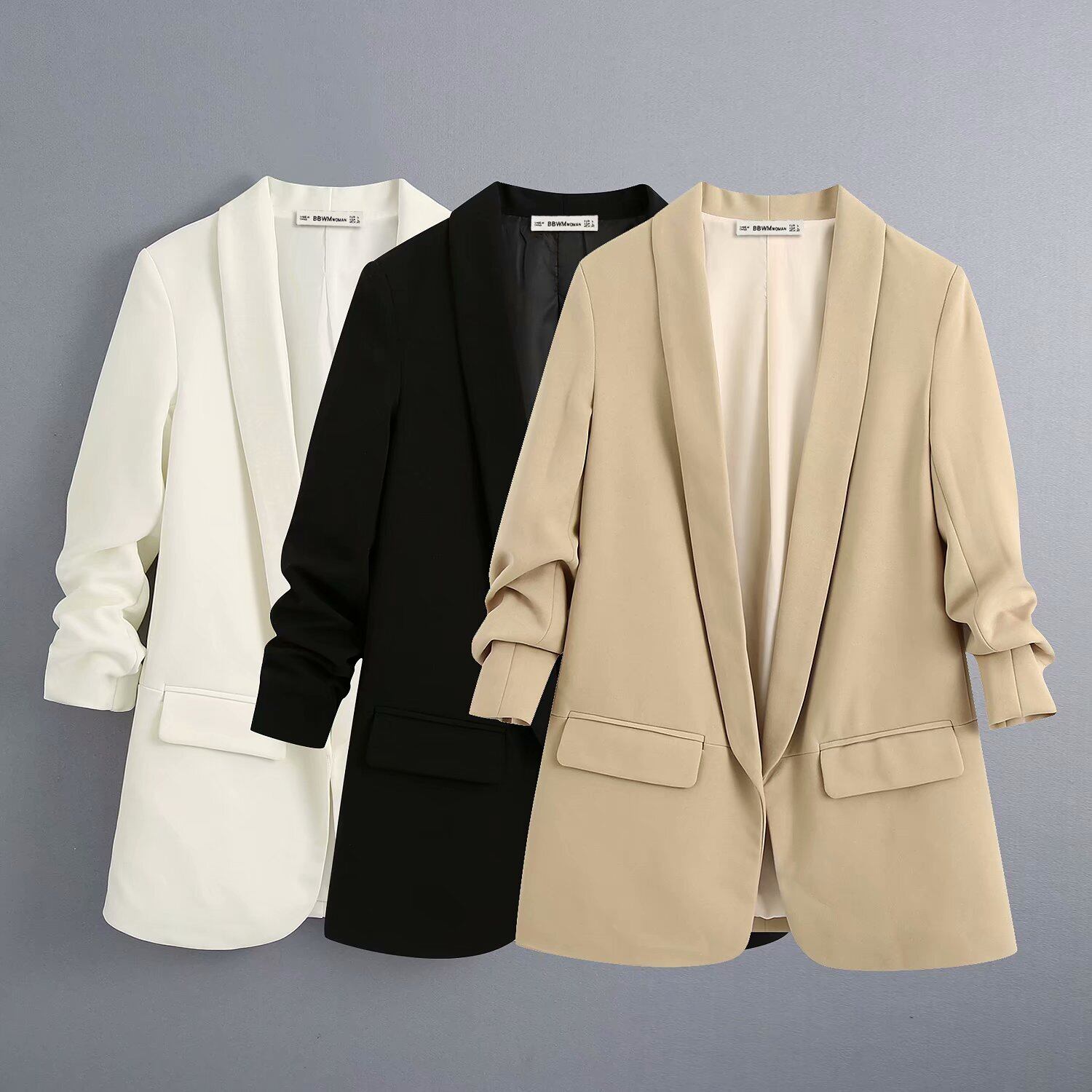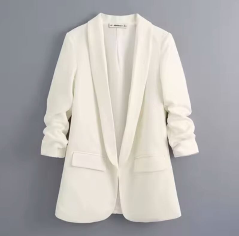 袖のプリーツが特徴的なお洒落なジャケットです。パンツにもスカートにも合わせやすい一着になります!通勤通学にも、少しきちんとしたコーディネートにもぴったりです。