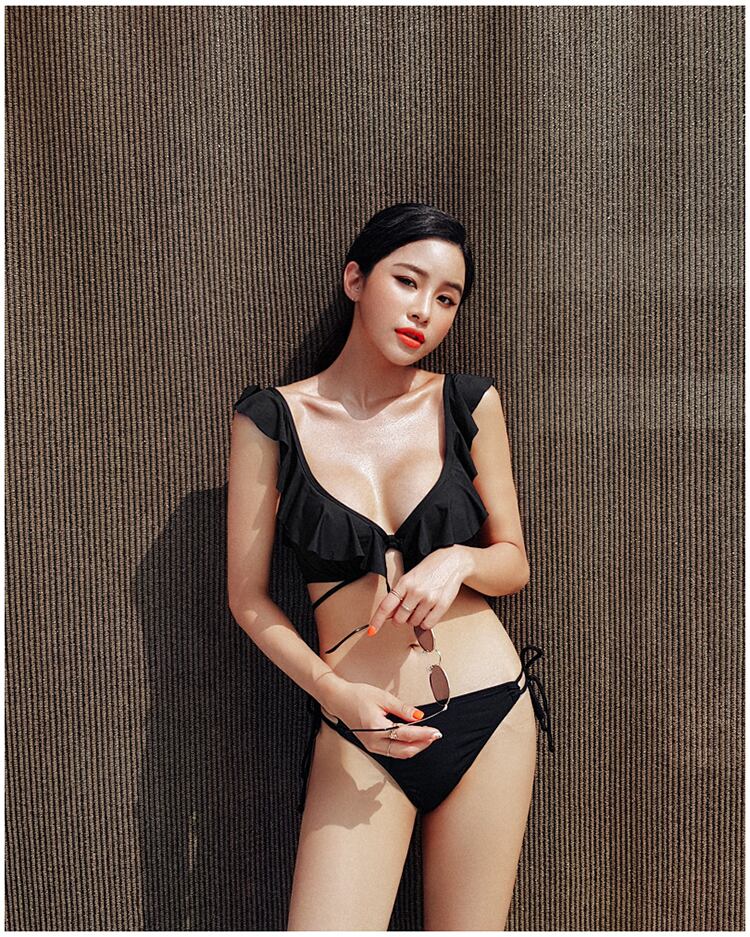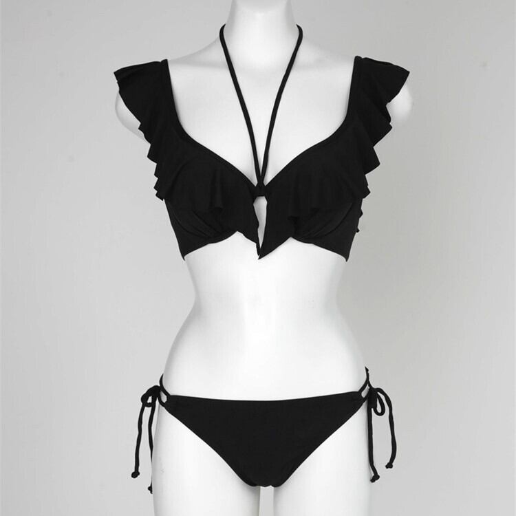 水着 ビキニ スイムウェア レディース 紐 三角ビキニ セパレート パッド付き フリル ウエストマーク ツーピース かわいい 大人可愛い きれいめ シンプル カジュアル ナチュラル ゴージャス 華やか 大人っぽい おしゃれ お洒落 レトロ 主役級 存在感 ラブリー キュート ガーリー クール スタイリッシュ モダン かっこいい セクシー トレンド 無地 リゾート 旅行 プール 夏 海 美脚 脚長 スタイルアップ 韓国 高見え モテ 背中見せ インスタ映え スタイルカバー こなれ感 M L XL ブラック