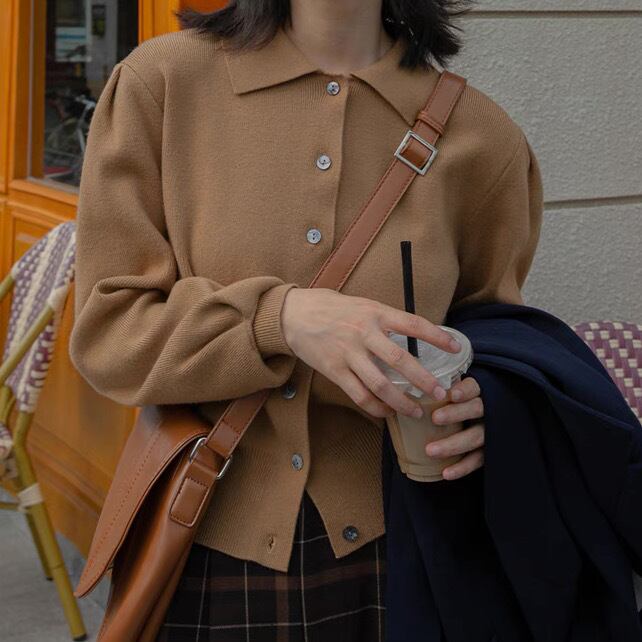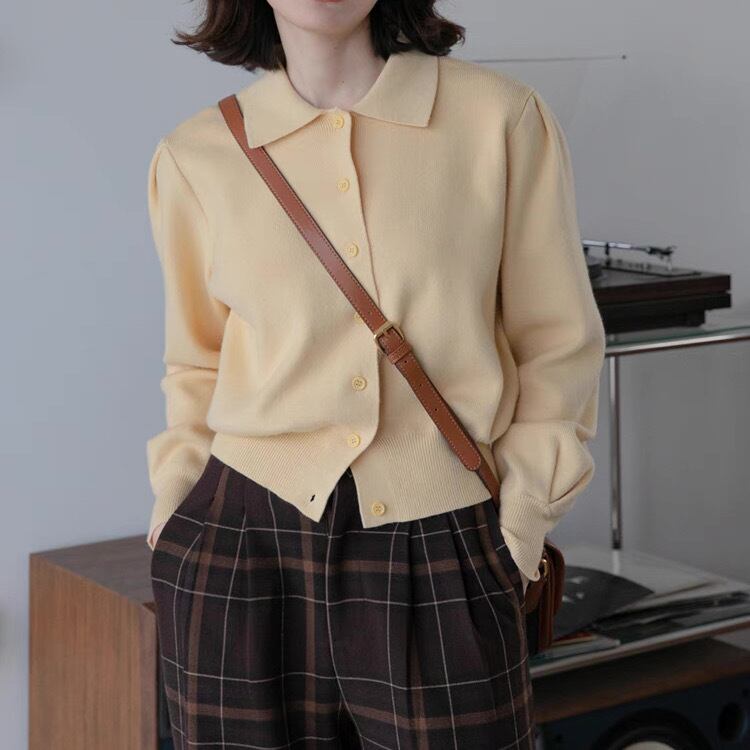 トップス カーディガン ポロシャツ ショート丈 長袖 襟 ポロカラー 前開き ボタン 無地 大人可愛い シンプル カジュアル おしゃれ お洒落 レトロ こなれ感 ラフ ガーリー ルーズ モダン フェミニン 清楚 春 秋 冬 10代 20代 30代 40代 レディース メンズ 女性用 デート お出かけ 女子会 休日 ショッピング 着回し 普段使い 重ね着 韓国 韓国系 オルチャン ファッション コーデ スタイル デイリー ホワイト ブルー ネイビー ピンク キャメル イエロー ブラック サイズ S M L