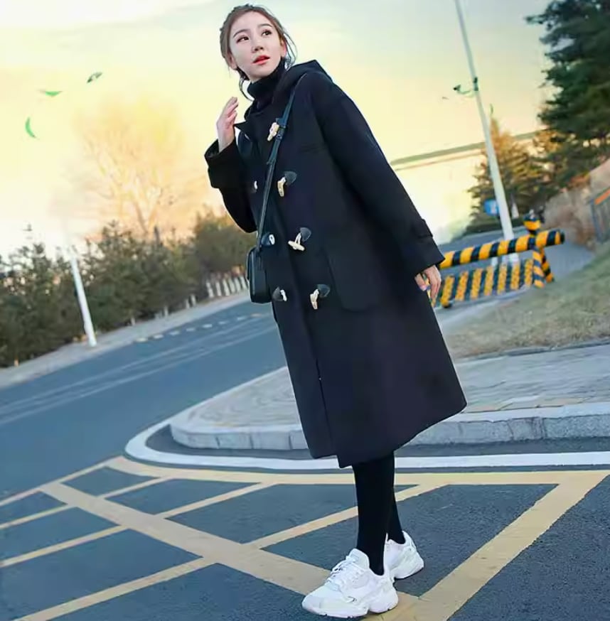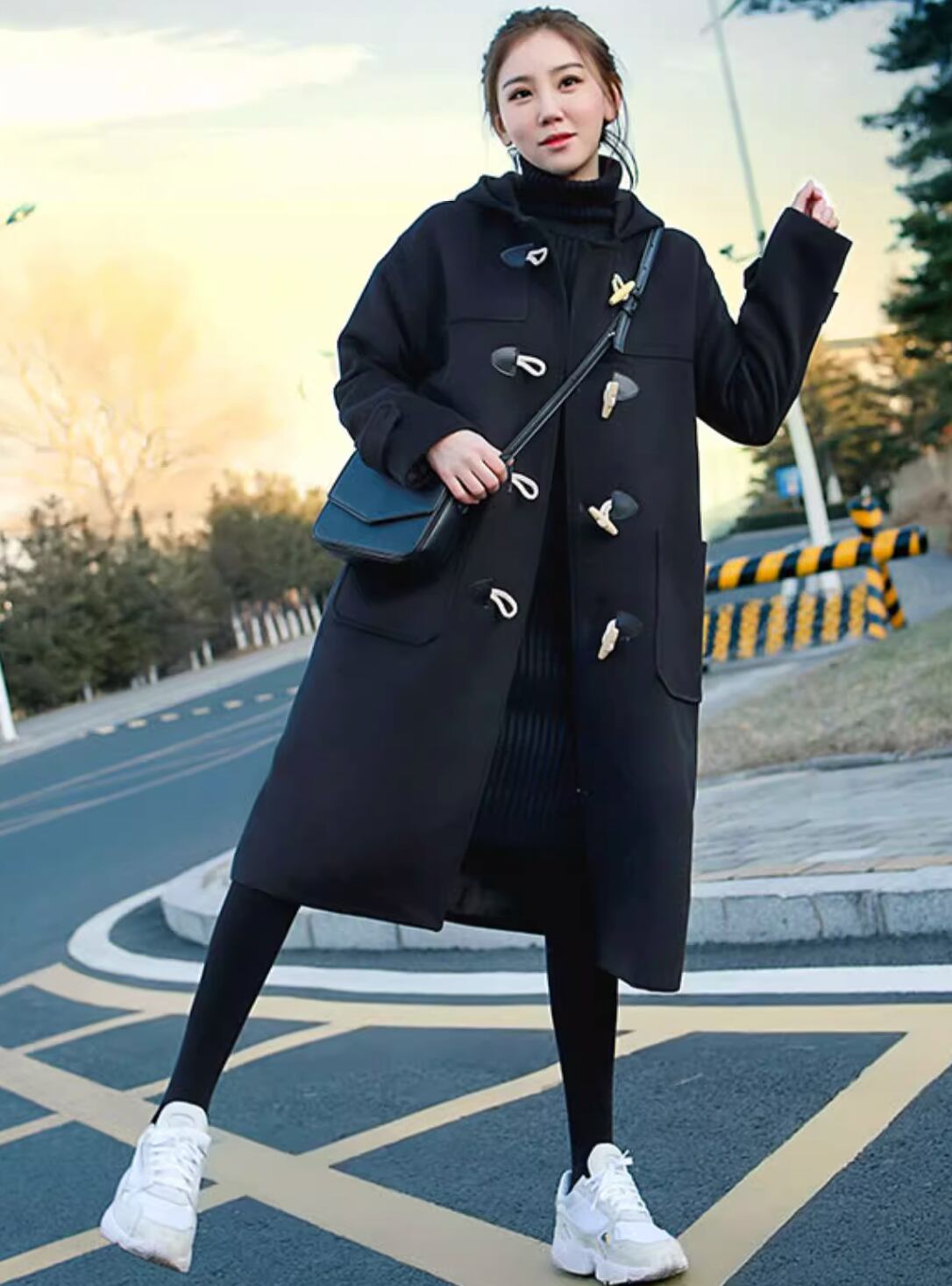 シンプルながらも女性らしいシルエットが魅力のダッフルコートです。どんなスタイルにも合わせやすく、幅広いシーンで活躍します。さまざまなサイズ展開もあるので、どんな体型の方にもぴったりのサイズが見つかるはずです。