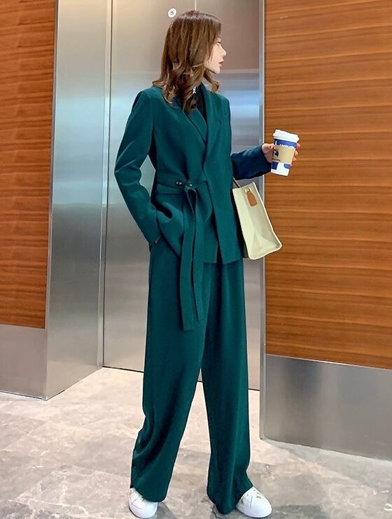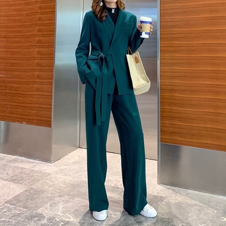 2点セット パンツ アウター セットアップ ジャケット ワイドパンツ 長袖 スリム 細身 ワイド ポケット 前開き 大人可愛い きれいめ シンプル カジュアル 大人 上品 お洒落 かっこいい レトロ 大人可愛い 大人女子 こなれ感 クール モード系 モダン 主役級 存在感 フォーマル とろみ感 無地 春 20代 30代 40代 レディース OL 通勤 お出かけ ホテル レストラン 韓国系 オルチャン ファッション コーデ スタイル トレンド 流行 S M L XL ホワイト ブラック ブルー グリーン