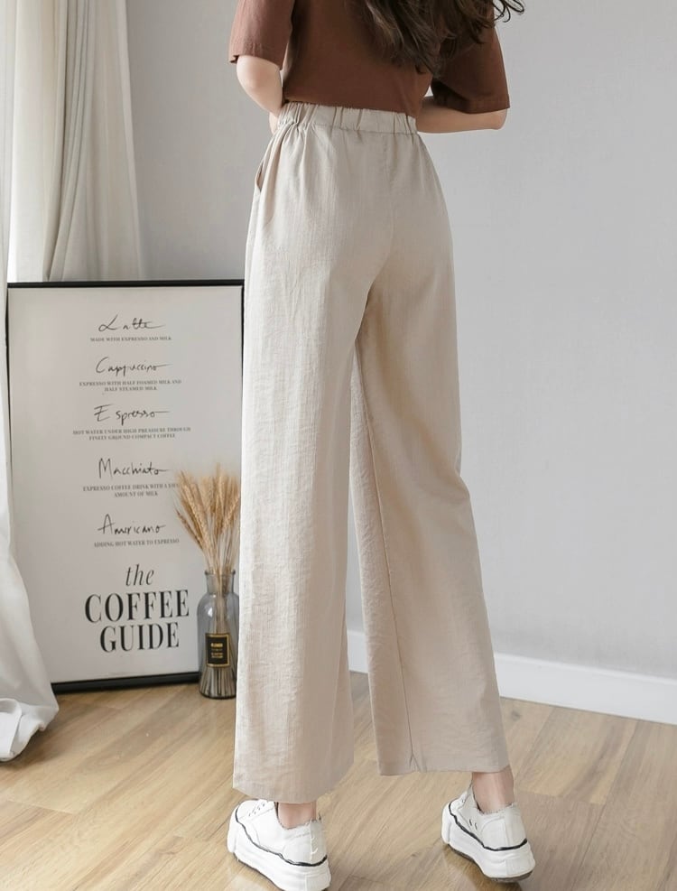 上品な雰囲気漂う薄手のワイドパンツです。 サラッとした素材で快適な履き心地。9分丈で脚長効果も抜群。カジュアルからきれいめまで幅広いスタイリングに対応してくれます。ポケットもしっかり付いており、実用性もバツグンです。さりげないドレープ感が女性らしい抜け感を演出してくれます。大人可愛い、上品さを兼ね備えたデザインなため、幅広いシーンで活躍するアイテムです。