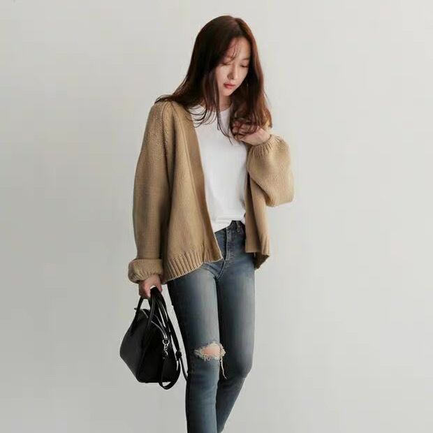 カーディガン 上着 羽織り クロップド丈 ショート丈 袖あり 長袖 厚手 無地 大人可愛い きれいめ シンプル カジュアル おしゃれ お洒落 ナチュラル こなれ感 ラフ ルーズ 抜け感 秋 冬 10代 20代 30代 40代 50代 レディース 女性用 オフィス ビジネス OL 通勤 学生 通学 デート お出かけ 女子会 休日 ショッピング 着回し 普段使い 韓国 韓国系 オルチャン ファッション コーデ スタイル 暖かい モテ デイリー 色展開 黒 ブラック カーキ サイズ フリーサイズ ゆる ゆったり