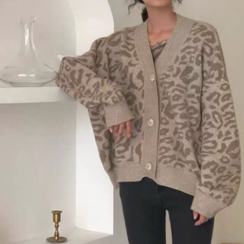 トップス カーディガン ショートカーディガン 羽織り クロップド丈 ショート丈 長袖 Vネック ニット セーター 柄 ヒョウ柄 レオパード 大人可愛い カジュアル おしゃれ お洒落 こなれ感 ラフ ルーズ 秋 冬 10代 20代 30代 40代 レディース 女性用 デート お出かけ 女子会 休日 ショッピング 着回し 普段使い 重ね着 韓国 韓国系 オルチャン ファッション コーデ スタイル 暖かい モテ インスタ映え デイリー 色展開 茶色 ブラウン オフホワイト サイズ S M L ゆったり ゆる