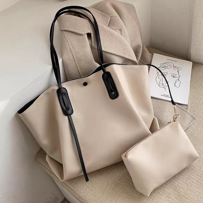 シンプルな大人可愛いバイカラーのPUトートバッグ。