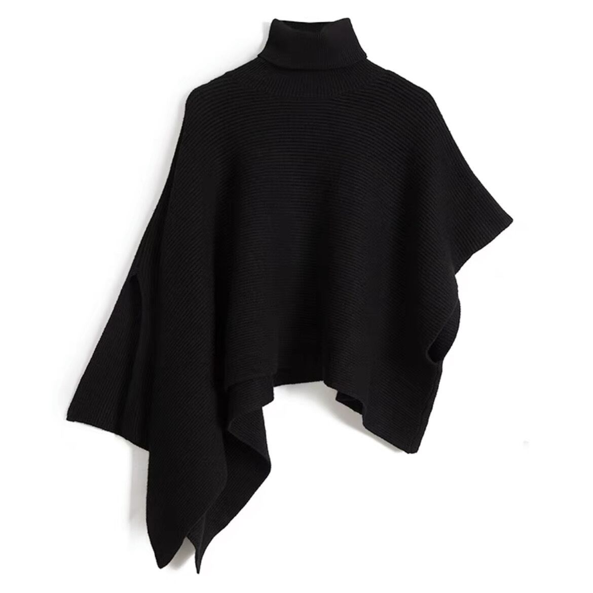 ハイネックとアシンメトリーなデザインが個性的でクールな雰囲気を演出し、きれいめからカジュアルまで幅広いスタイルに合わせやすくなっています。