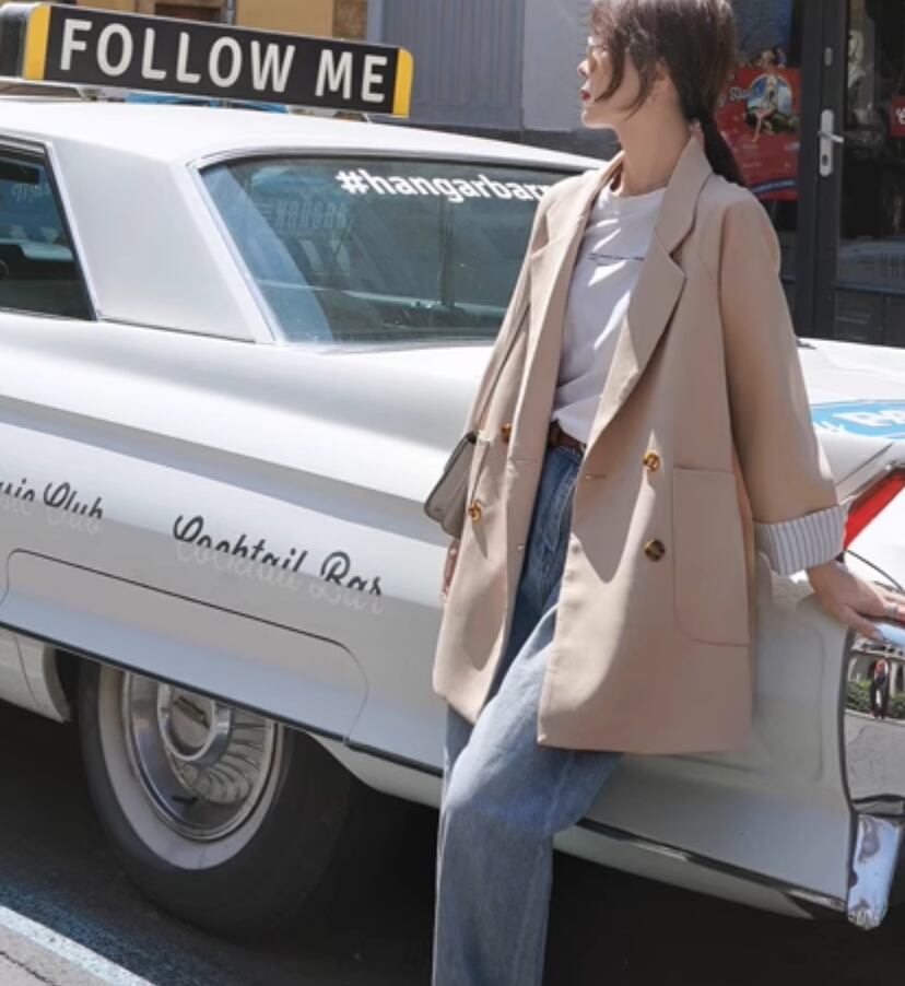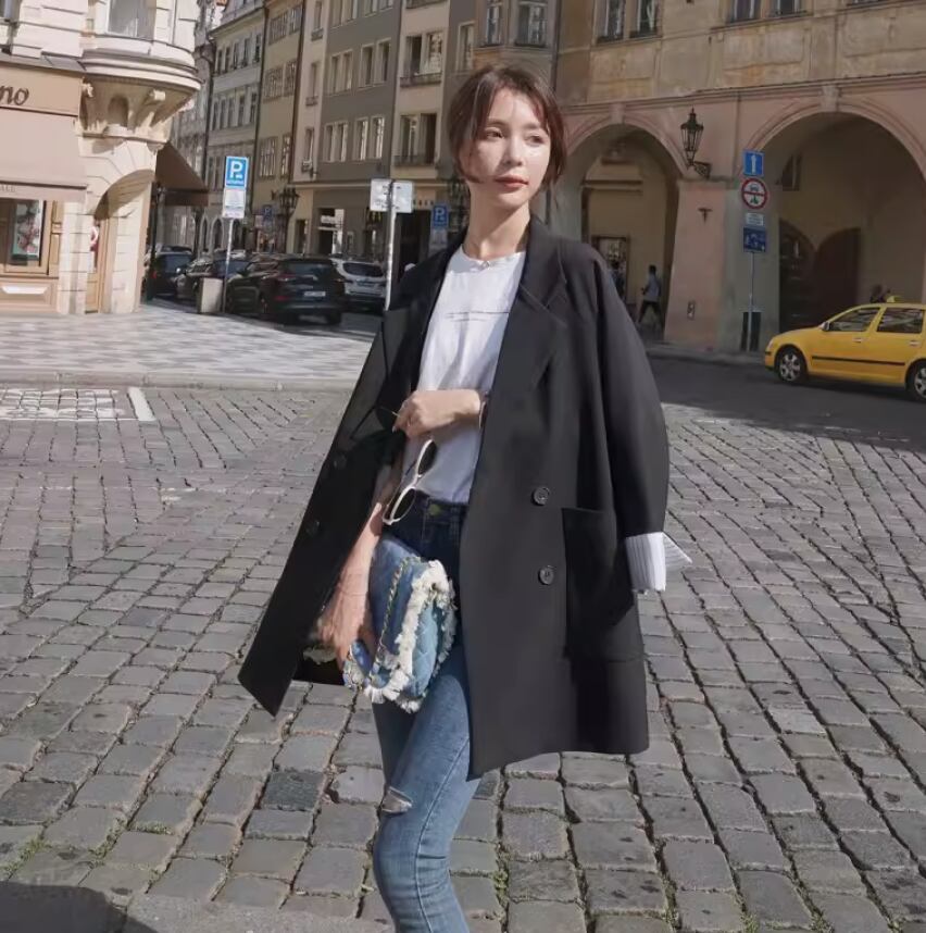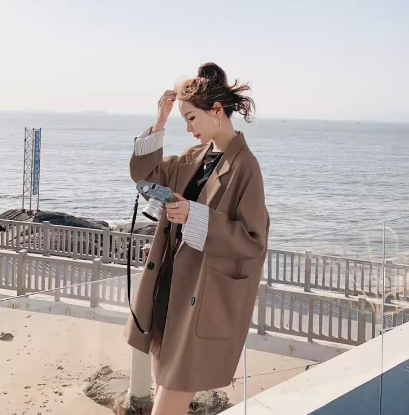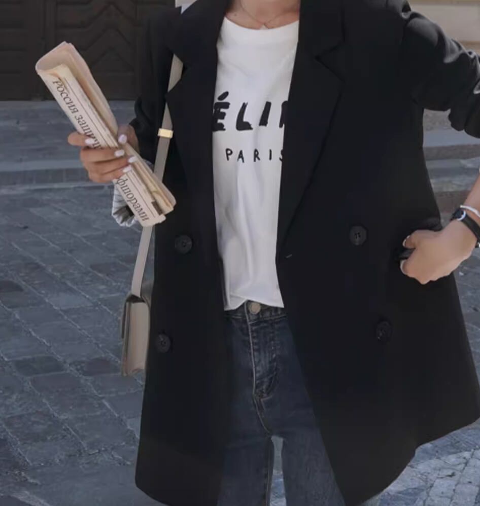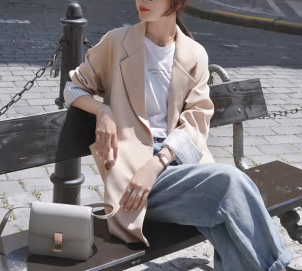 シックで上品な雰囲気を演出するジャケットです。袖の丈が長めで、女性らしいシルエットを作り出します。かっちりしすぎないデザインなので、カジュアルからきれいめまで様々なスタイルにマッチします。一枚で主役級の存在感を放ちつつ、抜け感もプラスできる一着です。
