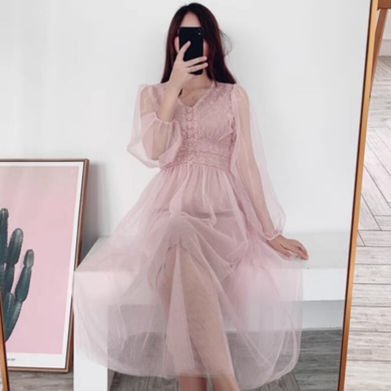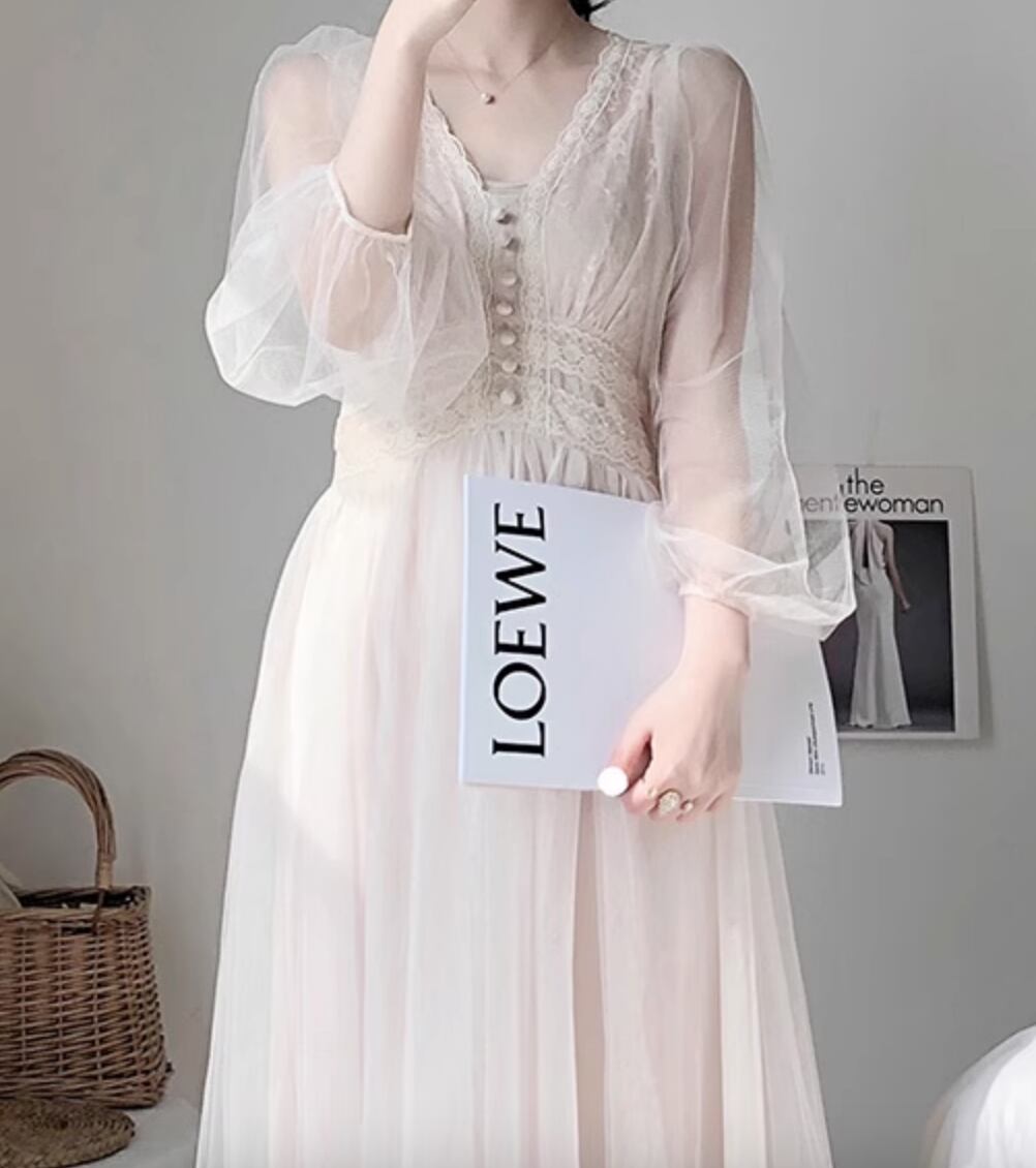 レトロな雰囲気漂うワンピースをご紹介します。長袖でありながら、軽やかな印象を与えるデザインです。そのままドレスとしても、カジュアルな着こなしにも合わせやすく、多彩なスタイルを楽しめます。