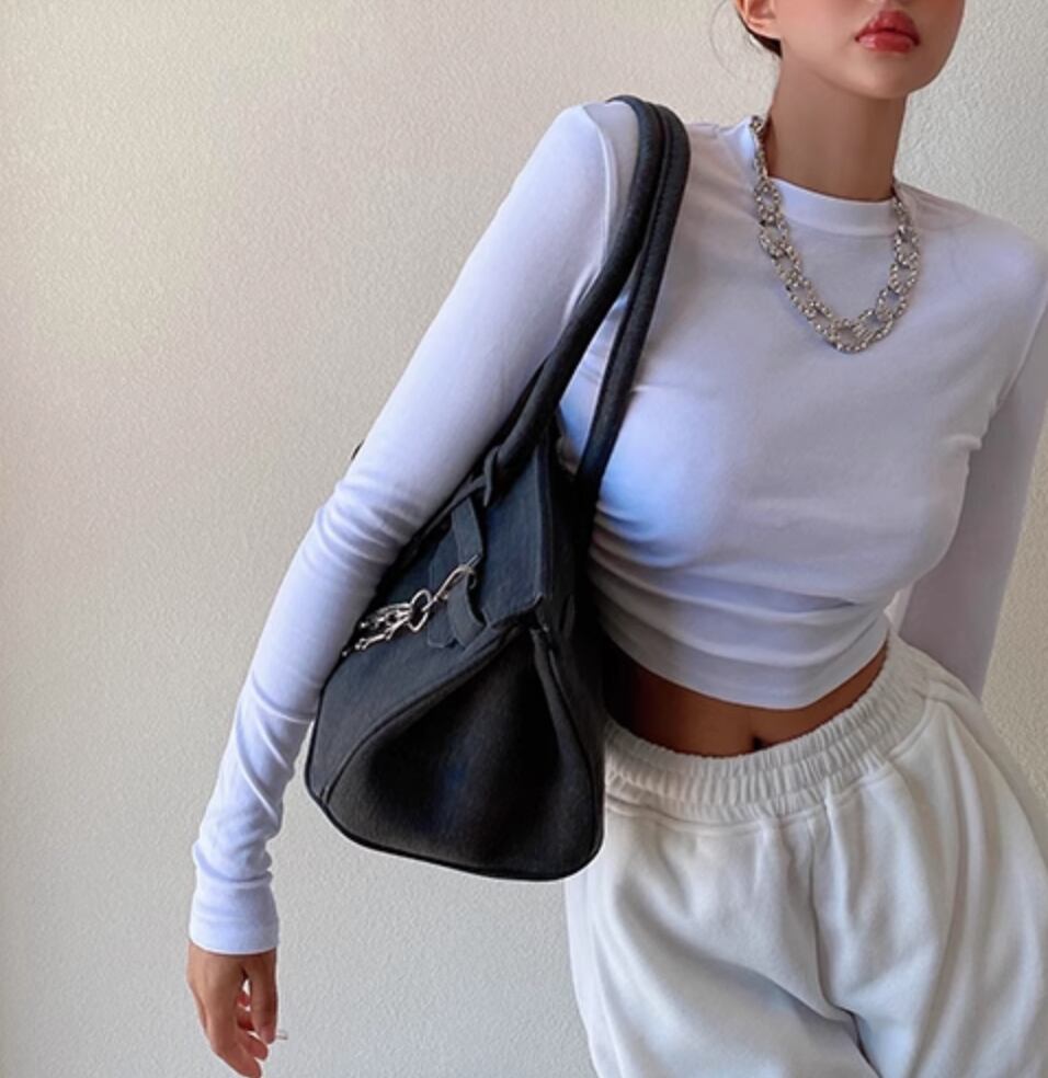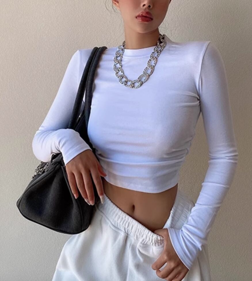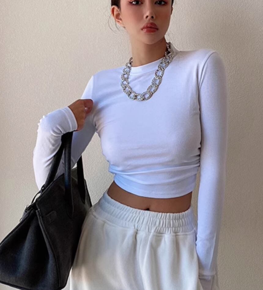 トップス ロンT ショート タイト スリム かわいい 大人可愛い きれいめ シンプル カジュアル 上品 おしゃれ かっこいい レトロ こなれ感 ラフ ガーリー ルーズ 個性的 クール モード系 エレガント 主役級 存在感 抜け感 ヴィンテージ ラブリー キュート ゴシック 都会的 ラグジュアリー クラシカル ロマンティック ナチュラル OL 学生 デート イベント 旅行 女子会 休日 ショッピング カフェ コーデ 楽ちん 普段使い 着回し モテ インスタ映え S M ホワイト ブラック