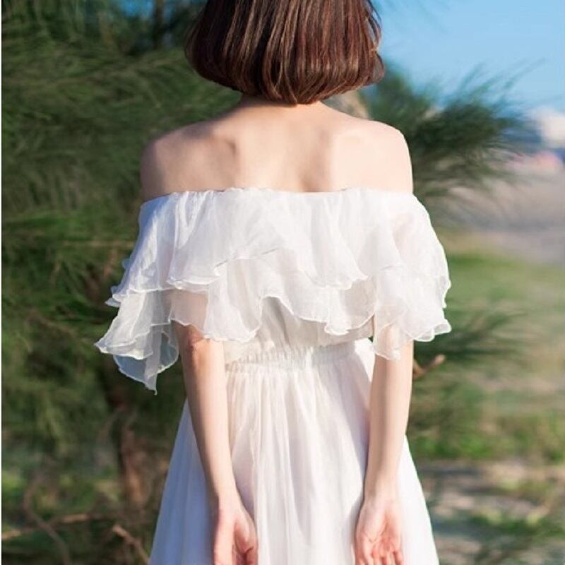 レディース ワンピース プルオーバー ロング 半袖 オフショルダー フレア スリム Aライン シフォン ふっくら ハイウエスト 大人可愛い きれいめ シンプル 上品 おしゃれ レトロ ラフ ガーリー 個性的 存在感 抜け感 ラブリー キュート 無地 春 夏 秋 OL 学生 デート お出かけ お泊まり パーティー イベント リゾート 旅行 プール 女子会 休日 バカンス コンサート 合コン コンパ カフェ プレゼント 体型カバー 脚長 着回し モテ 清楚 インスタ映え S M L ホワイト