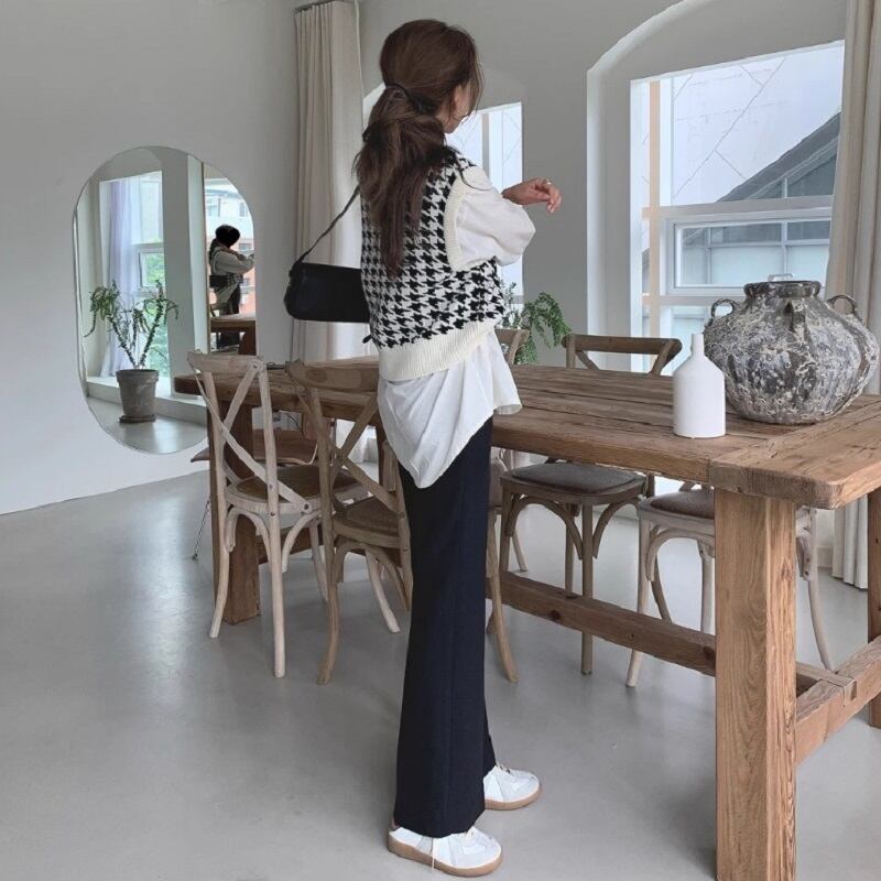 甘くて可愛らしいレトロなデザインが魅力のレディースベスト。Vネックとスリムなシルエットが女性らしい上品さを引き立てます。マットな質感の生地が、大人可愛い雰囲気を演出し、千鳥格子柄が個性的で存在感抜群。おしゃれな大人女子のためのキュートなアイテムです。