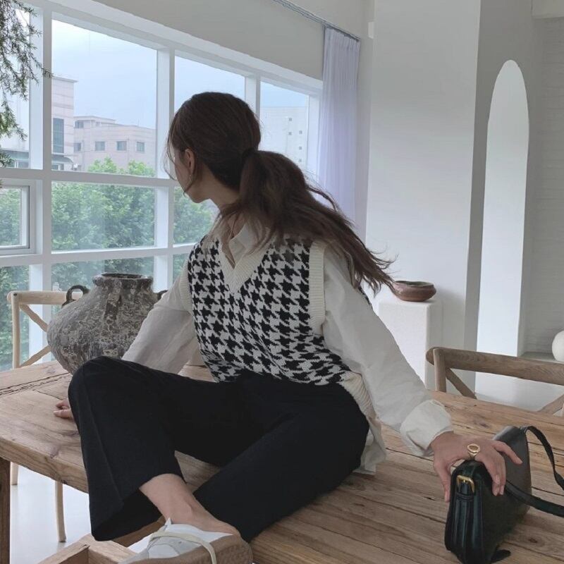 レディース プルオーバー ベスト レギュラー 袖なし ノースリーブ Vネック スリム 大人可愛い きれいめ シンプル 上品 おしゃれ レトロ ラフ ガーリー 個性的 存在感 抜け感 ラブリー キュート 千鳥格子 春 秋 冬 OL 通勤 学生 通学 デート お出かけ お泊まり パーティー イベント リゾート 旅行 プール 女子会 休日 バカンス コンサート 合コン コンパ カフェ 重ね着 プレゼント 体型カバー 着回し モテ 清楚 インスタ映え フリーサイズ ホワイト ブラック ベージュ グリーン