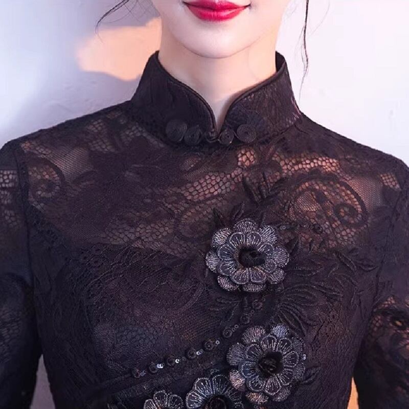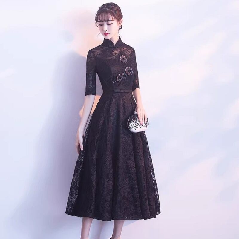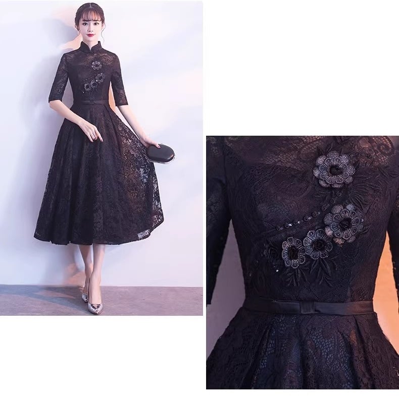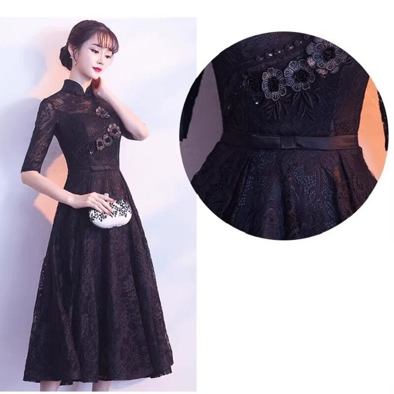 ドレス ウェディング パーティー 結婚式 二次会 披露宴 演奏会 発表会 ステージ 膝上 5分袖 襟付き スタンドカラー Aライン レース バックコンシャス ファスナー ハイウエスト 薄手 きれいめ シンプル 大人可愛い 上品 おしゃれ レトロ クール エレガント 抜け感 清楚 ゴージャス エレガント 花柄 パーティー イベント リゾート ホテル ガーデン レストラン 二の腕カバー 美脚 脚長 格上げ 女子会 シーズンレス 謝恩会 ラウンジ クラブ XS 2XL S M L XL スリム ブラック