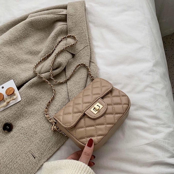 スクエアとキルティングのデザインが特徴で、大人可愛い雰囲気を演出できるバッグ。