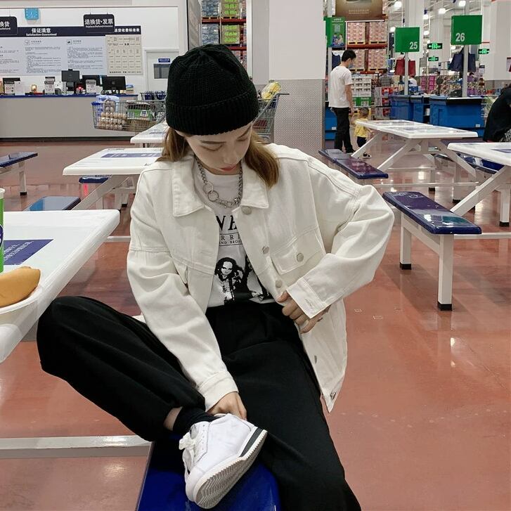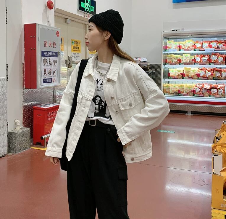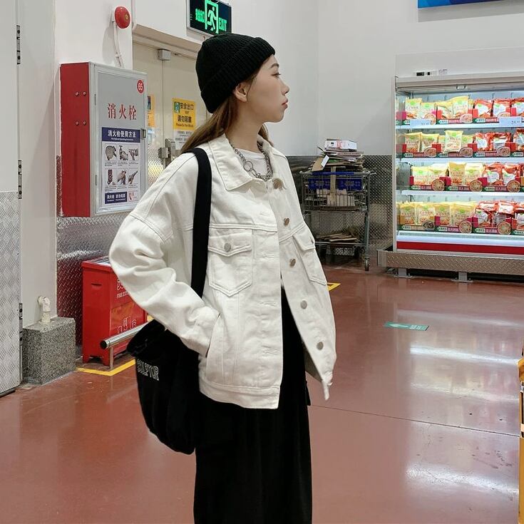 存在感のある白デニムジャケットで、おしゃれ度をアップ♪