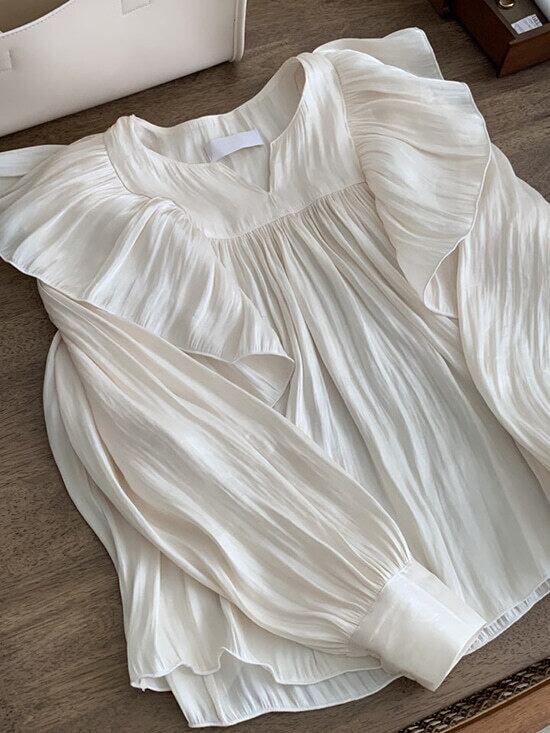 トップス ブラウス 長袖 バルーンスリーブ フリルネック バックシャン バックコンシャス 無地 かわいい 大人可愛い シンプル カジュアル おしゃれ お洒落 ナチュラル こなれ ラフ ラブリー キュート ガーリー ルーズ フェアリー フェミニン 春 秋 10代 20代 30代 40代 レディース 女性用 デート お出かけ 女子会 休日 ショッピング 公園 着回し 普段使い 韓国 韓国系 オルチャン ファッション コーデ スタイル モテ デイリー 色展開 白 ホワイト ブラック サイズ フリーサイズ