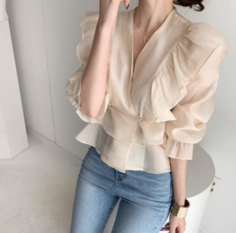 レトロな雰囲気が魅力のトップスシャツ。華やかさと品のあるデザインで、大人可愛いコーディネートを叶えます。長袖なので、春から秋まで長く活躍すること間違いなし。シンプルながらも個性的なデザインは、あなたのコーディネートを引き立て、女性らしい魅力をプラスします。