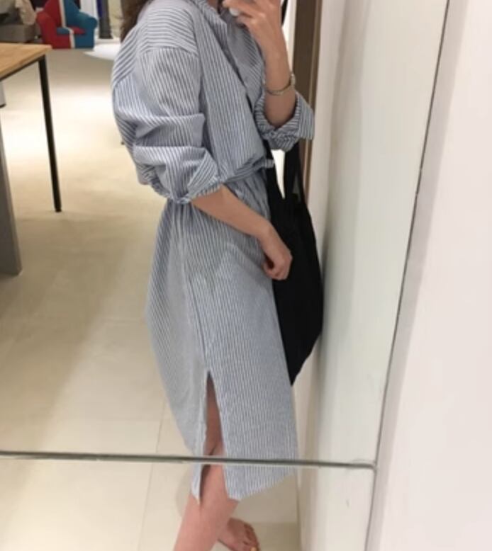 ワンピース シャツワンピ ミモレ 長袖 かわいい 大人可愛い きれいめ シンプル カジュアル 上品 おしゃれ かっこいい レトロ こなれ感 ラフ ガーリー ルーズ 個性的 クール モード系 エレガント 主役級 存在感 抜け感 ヴィンテージ ラブリー キュート ゴシック 都会的 ラグジュアリー クラシカル ロマンティック ナチュラル 春 秋 OL 学生 デート イベント 旅行 女子会 休日 ショッピング カフェ コーデ 楽ちん 普段使い 着回し モテ インスタ映え S M L XL ブルー