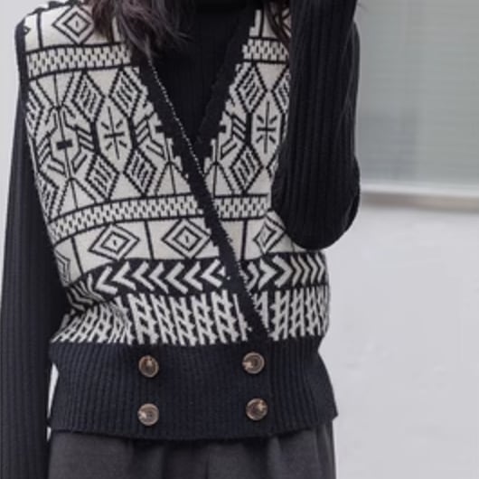 レトロな雰囲気漂うニットベストが登場しました。大人可愛いヴィンテージスタイルや、女子会やデートなどの特別なお出かけにピッタリです。上品な印象を与える黒色は、さまざまなコーディネートと相性抜群。カジュアルにもエレガントにも着こなせる優れものです。