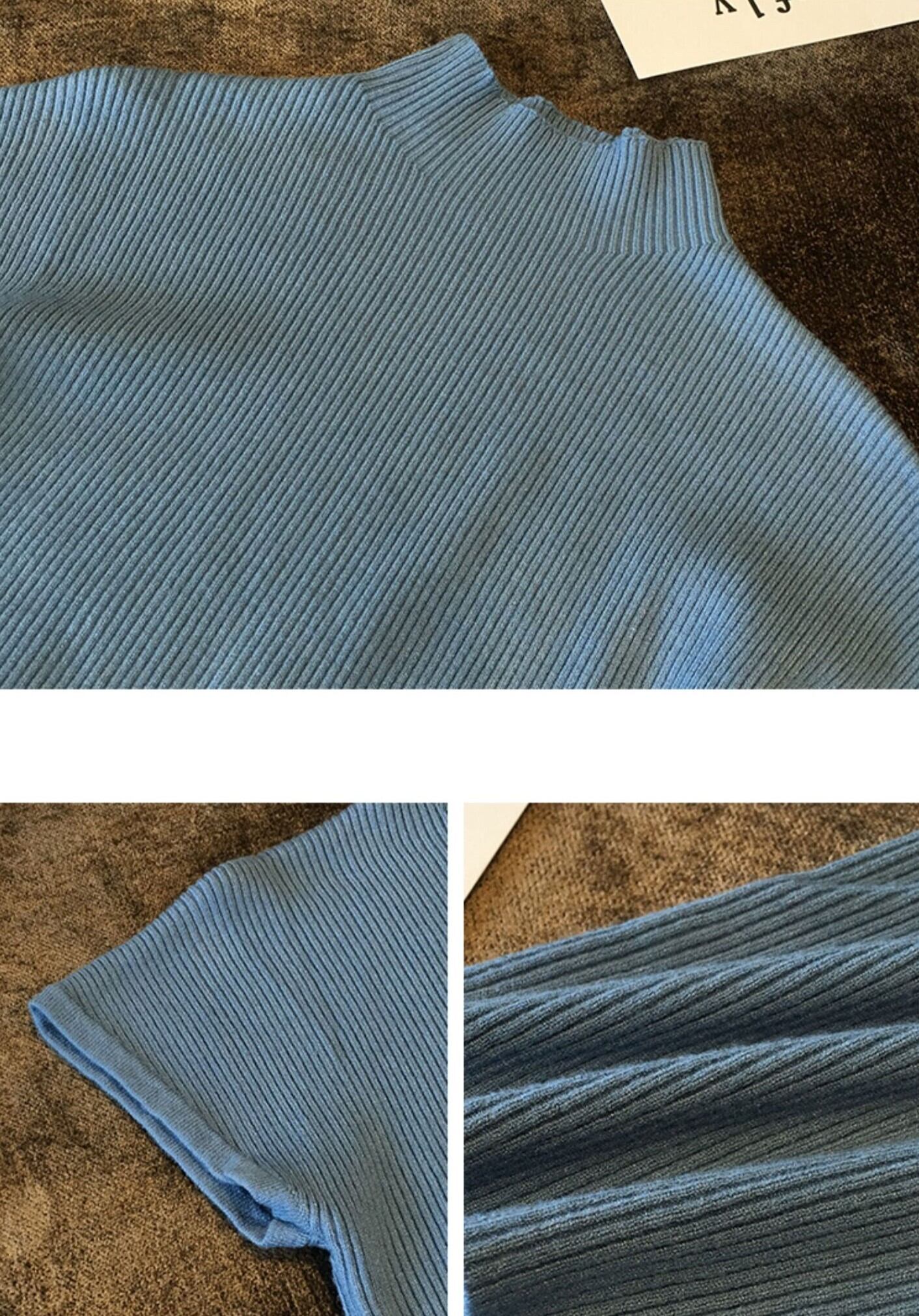 レディース ニット セーター 半袖 ハーフタートルネック タイト スリム 細身 ストレート リブ 薄手 かわいい 大人可愛い きれいめ シンプル カジュアル 上品 おしゃれ ガーリー エレガント ラブリー キュート 無地 春 秋 謝恩会 ママ OL 通勤 学生 学校 通学 デート お出かけ イベント レストラン 女子会 ショッピング カフェ 韓国 コーデ 楽ちん 普段使い 着回し モテ 清楚 トレンド 流行 インスタ映え フリーサイズ ホワイト ブラック グレー ピンク ブルー アプリコット パープル