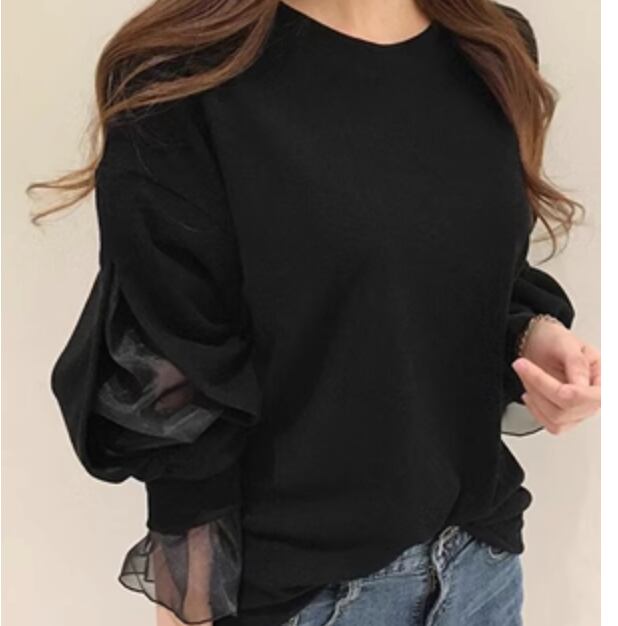 レディース トップス カットソー ニットソー ショート ショート丈 袖あり 長袖 ボリューム袖 パフスリーブ 萌袖 ラウンドネック セミフレア スリム シフォン 切り替えデザイン ドッキング ふわふわ ポリエステル かわいい 大人可愛い きれいめ 大人 上品 お洒落 ラブリー キュート ガーリー 個性的 モード系 セクシー エレガント とろみ感 無地 春 秋 10代 20代 オフィス ビジネス 学生 通学 デート お出かけ 女子会 イベント ガーデン レストラン 着回し 普段使い 楽ちん 黒 ブラック