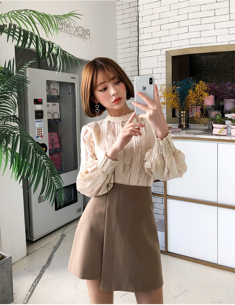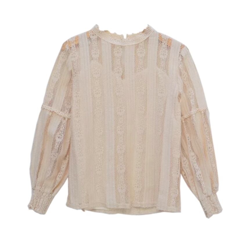スタンドカラーの首元と刺繍のデザインが施された、大人可愛いトップスです。萌袖の9分袖で、ラブリーな雰囲気と抜け感があります。S、M、L、XLと大きいサイズ展開もございます。おしゃれでかわいいコーディネートを楽しみたい方におすすめです。