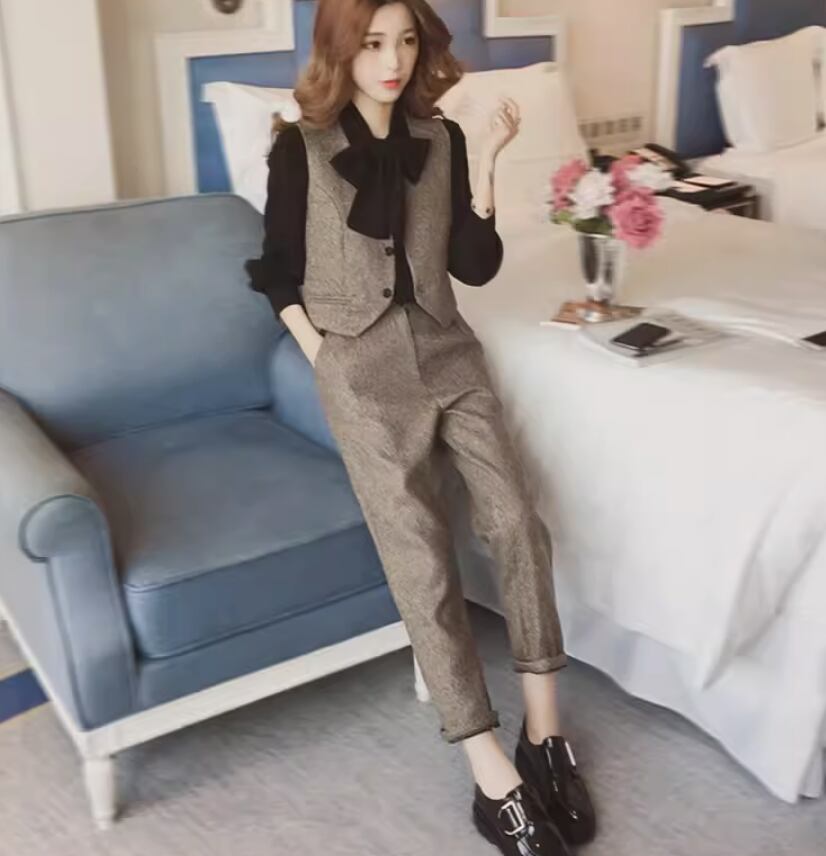3点セットのトップス、パンツ、ベストがセットになった、オシャレで大人可愛いアイテムです。イベントや旅行など、あらゆる場面で活躍します。ショッピングやカフェに行く際にもピッタリです。本商品は普段使いから特別な日まで幅広く着回せるため、モテる女子になれること間違いなしです。