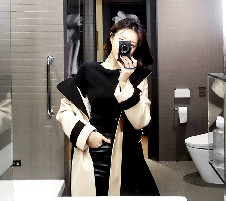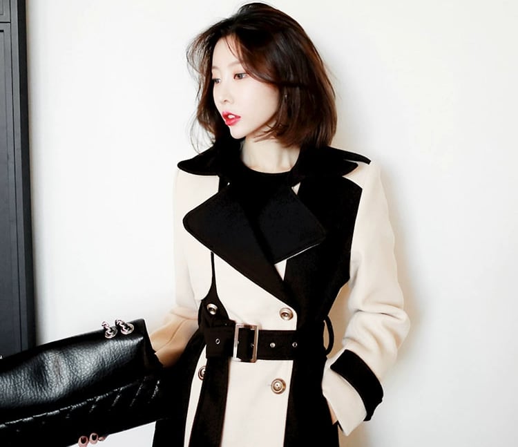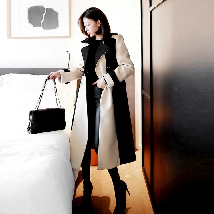 個性的な配色のおしゃれな雰囲気漂うミッドレングスのコート!