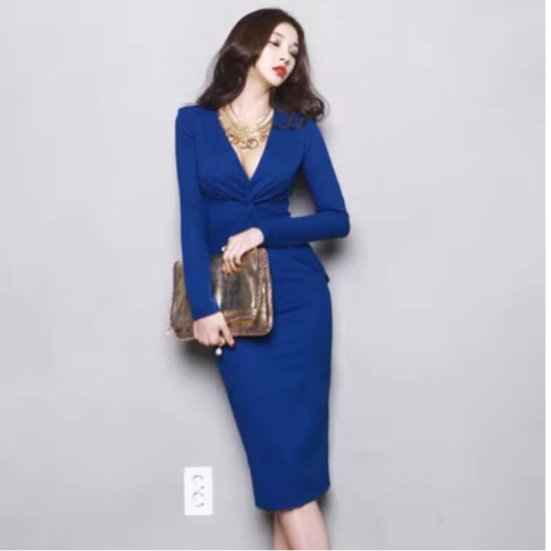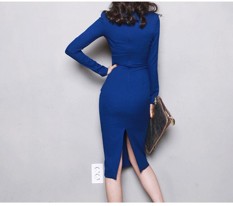 レディース ワンピース ワンピドレス 膝丈 膝下 袖あり 長袖 Vネック スリム タイト 細身 ストレート ファスナー きれいめ シンプル 上品 おしゃれ お洒落 モード系 セクシー エレガント モダン 主役級 存在感 フォーマル とろみ感 無地 春 夏 秋 オールシーズン シーズンレス 謝恩会 結婚式 二次会 披露宴 10代 20代 30代 女性用 休日 パーティー イベント 普段使い ファッション スタイル 美脚 脚長 綺麗め 大人 レトロ トレンド 流行 インスタ映え S M L XL 青 ブルー