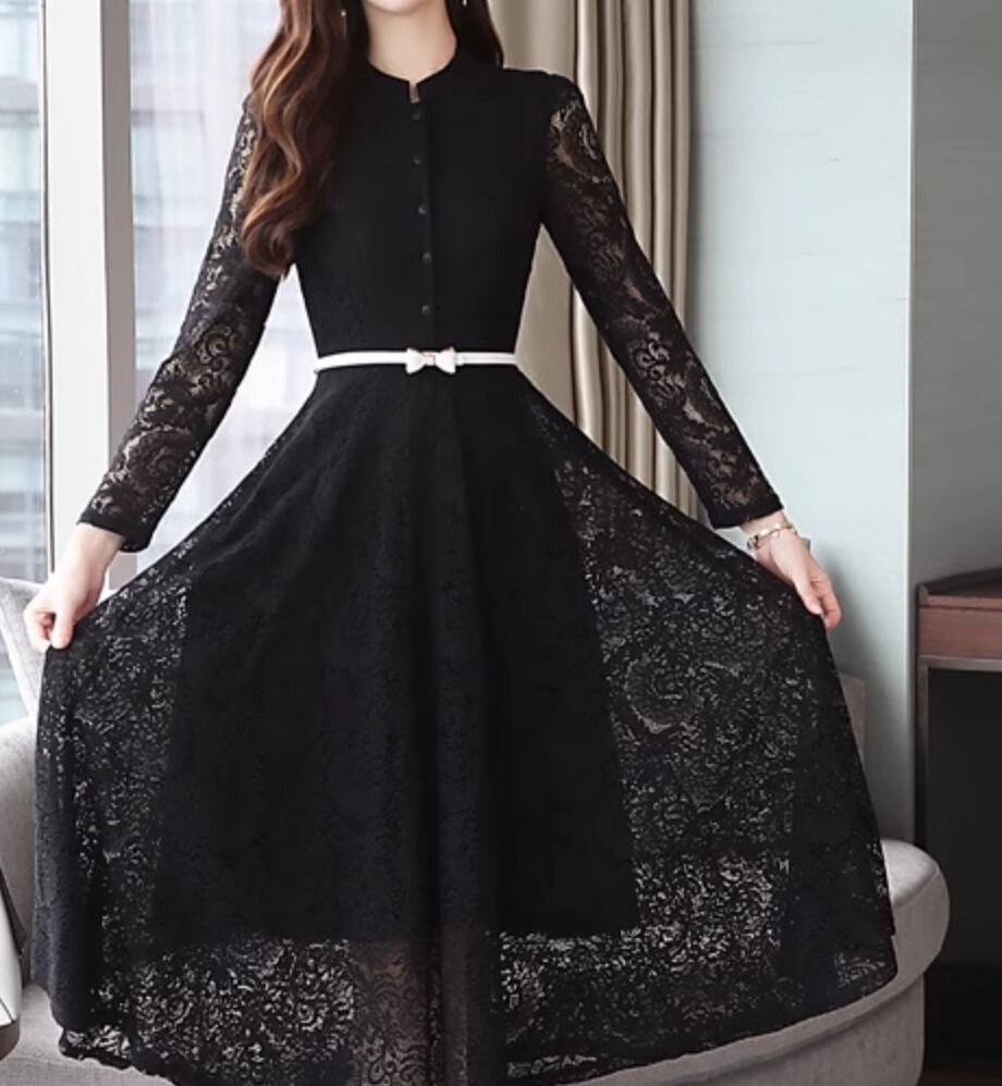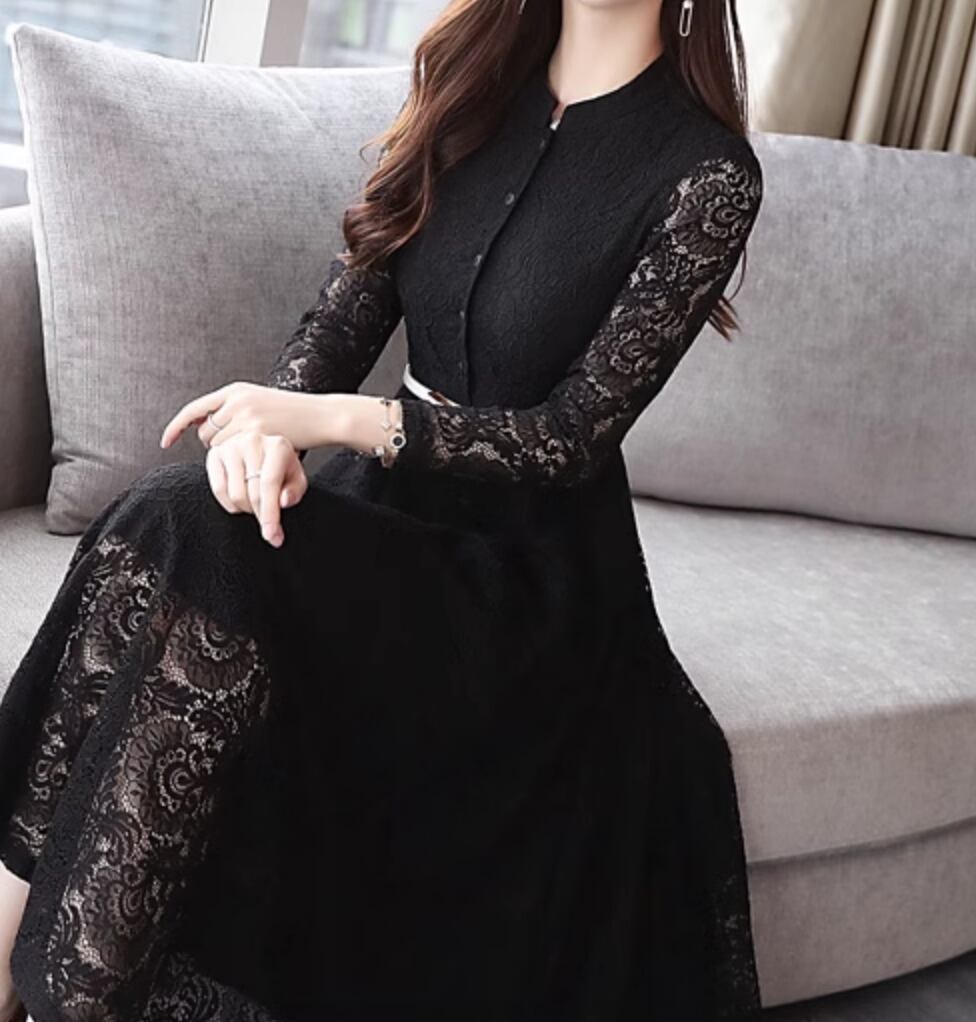 ワンピース ドレス ロング 長袖 レース かわいい 大人可愛い きれいめ シンプル カジュアル 上品 おしゃれ かっこいい レトロ こなれ感 ラフ ガーリー ルーズ 個性的 クール モード系 エレガント 主役級 存在感 抜け感 ヴィンテージ ラブリー キュート ゴシック 都会的 ラグジュアリー クラシカル ロマンティック ナチュラル OL 学生 デート イベント 旅行 女子会 休日 ショッピング カフェ コーデ 楽ちん 普段使い 着回し モテ インスタ映え M L XL 2XL 3XL ブラック ブルー