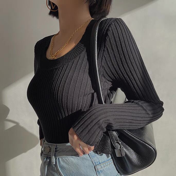 シンプルながらもおしゃれなデザインが魅力のリブニットカットソー。